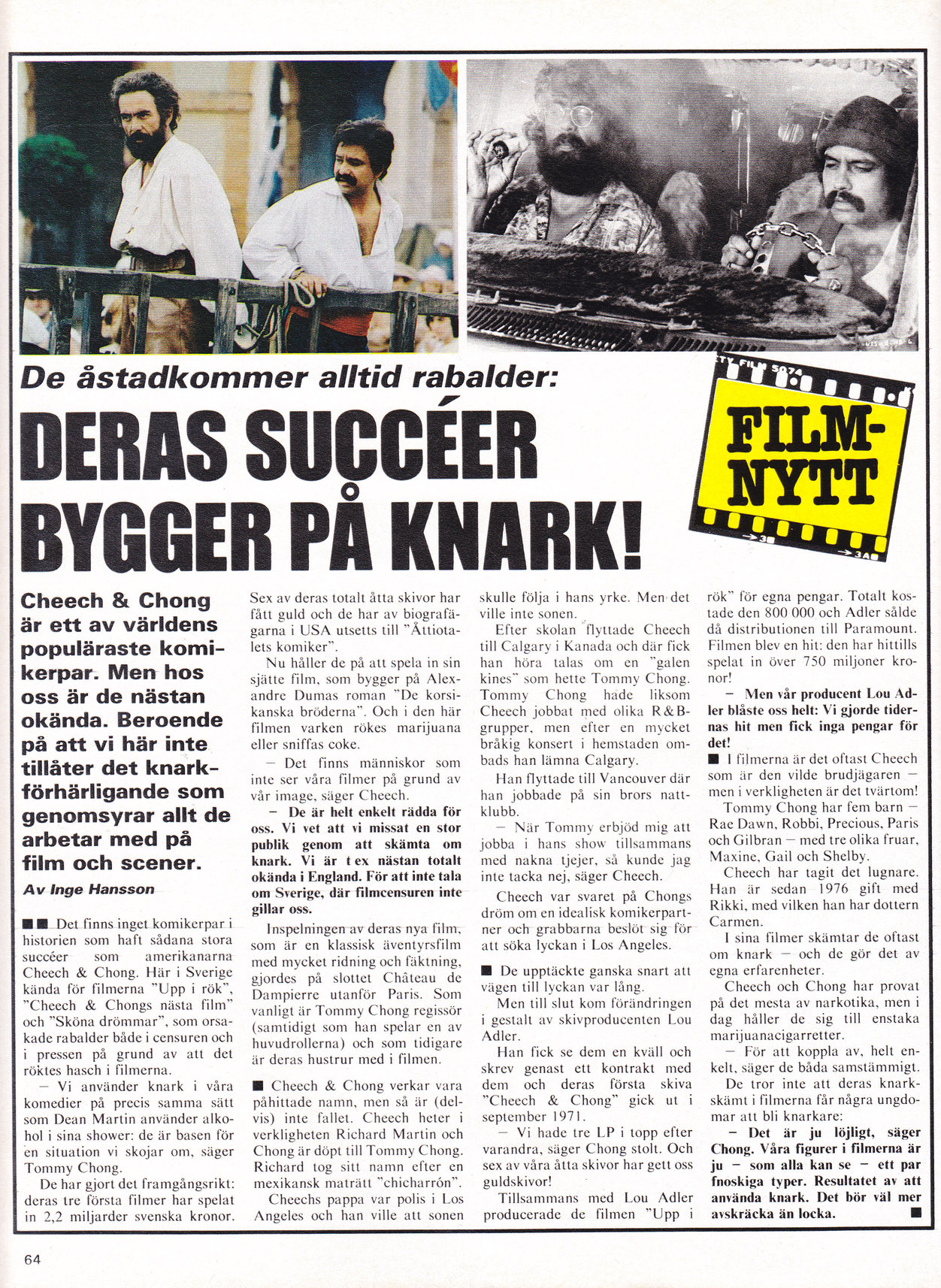 Först ut är en kort artikel i Stopp fib akutellt nr 44 1983 som handlar om Cheech & Chong.
