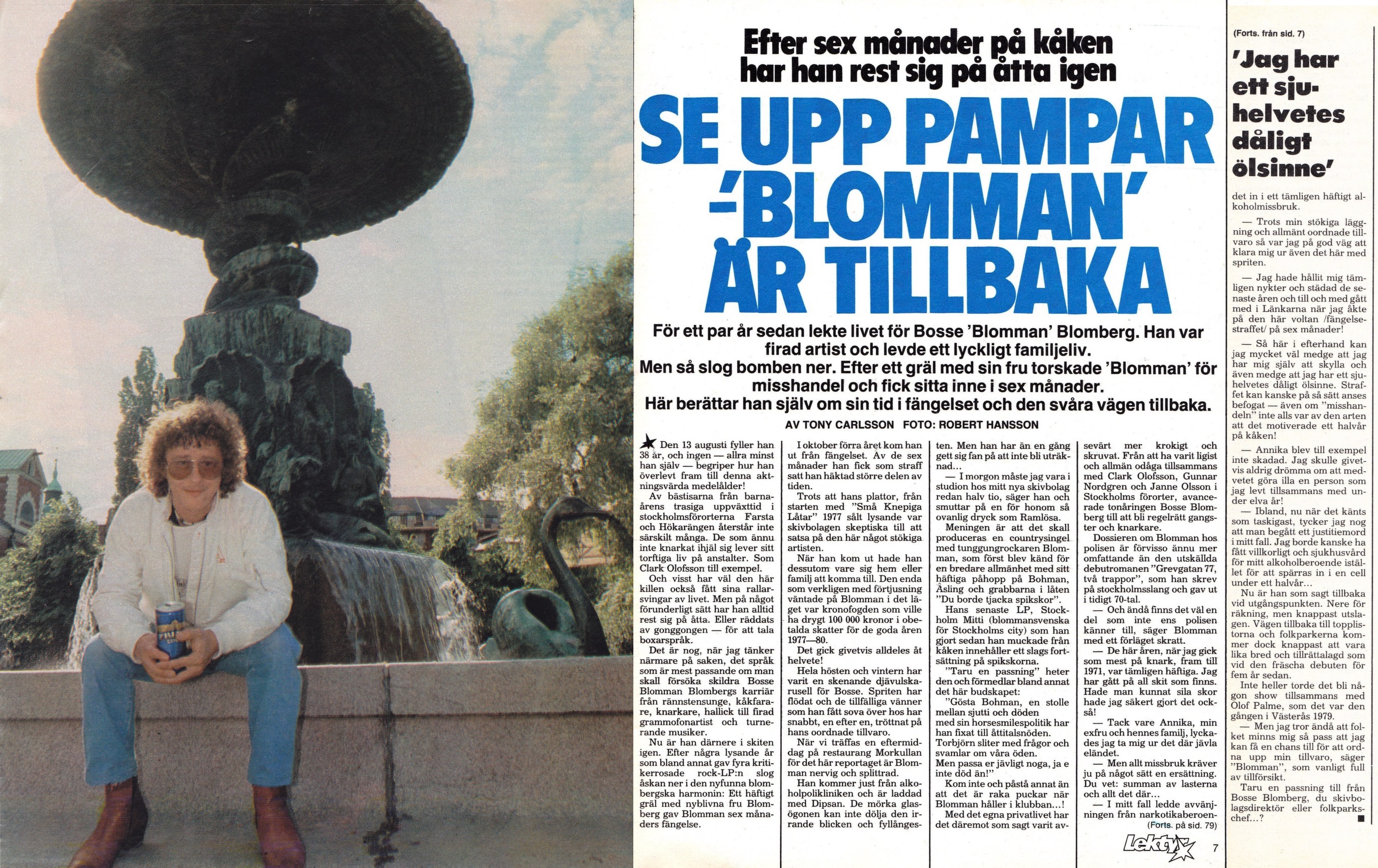 […] mfl) och missbrukare som främst var aktiv på 70 och tidiga 80-talet. Jag har tidigare postat en artikel från 1982 med Blomman efter hans fängelsevisit 1981. Väl värd att läsas.Något som jag tror är ganska […]