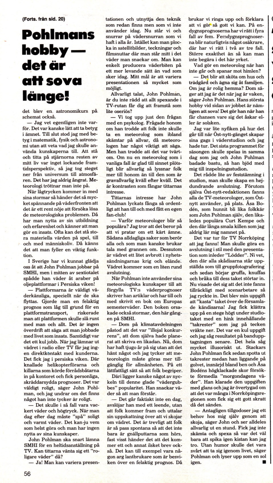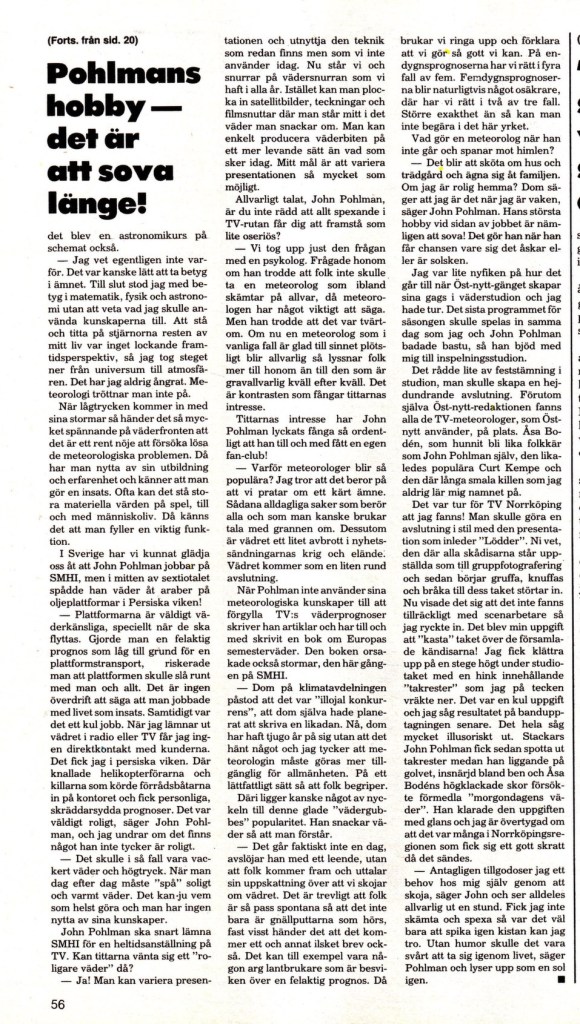 I nr 33 1982 av den kultur- och samhällskritiska blaskan Lektyr, så går Christina in i bastun med meteorologen John Pohlman. Pohlman är ett välkänt ansikte för oss 60- och 70-talister. John spexade ofta till det, som till exempel detta klassiska klipp från barnjournalen.