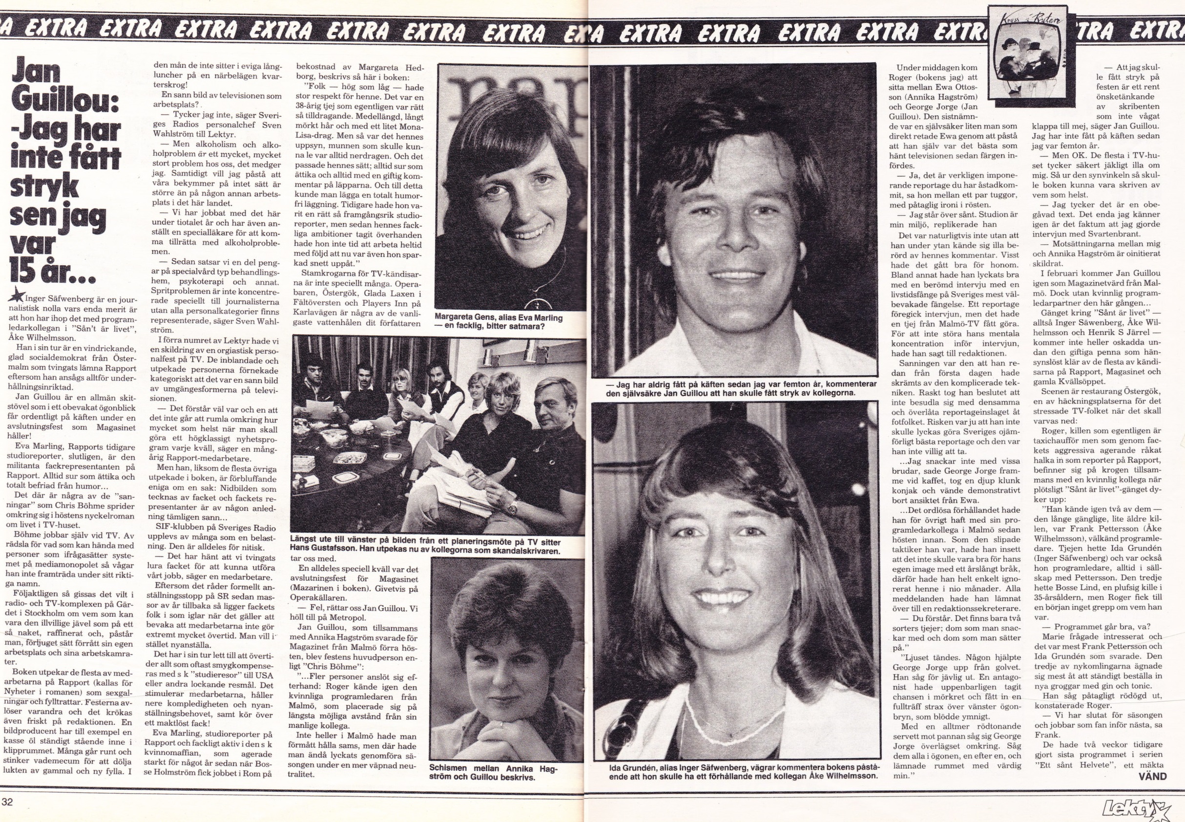 Sen kom artikel två i nr 50 1982 av Lektyr där bland annat Jan Guillou beskrivs som impopulär och ska ha fått på snoken av en kollega. Jan brister ut ”Jag har inte fått stryk sen jag var 15 år”. Wow, vilken man han är.