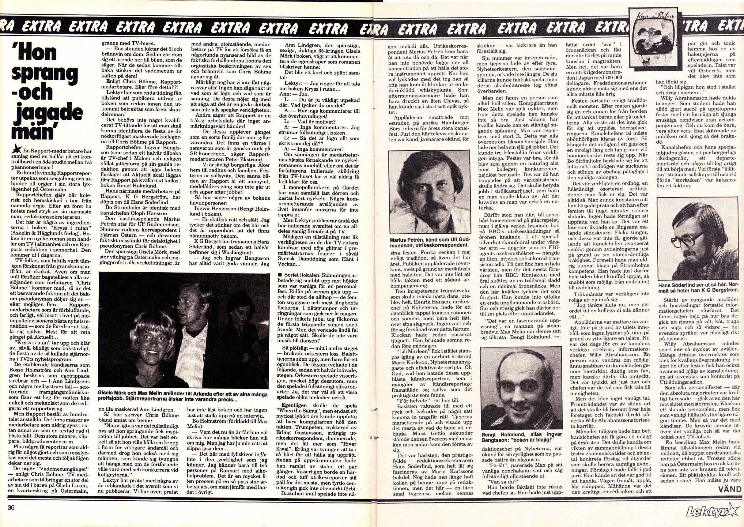 Efter första artikel så gjorde slasktidningen Expressen en artikel 9/12 1982 om kulturblaskan Lektyrs publicering. Av en ren slump hitta jag den på den trevliga bloggen ”En man med ett skägg” som tar upp boken Kryss i rutan. Så jag stal den bilden i sann herrtidningsanda, rebellisk och med en sanningen-måste-fram mentalitet. Något som sen the piratebay, wikileaks och diverse nätaktivister snott från vad föregångarna, kultur- och sanningspressen som Lektyr, Fib aktuellt mfl, stod för.