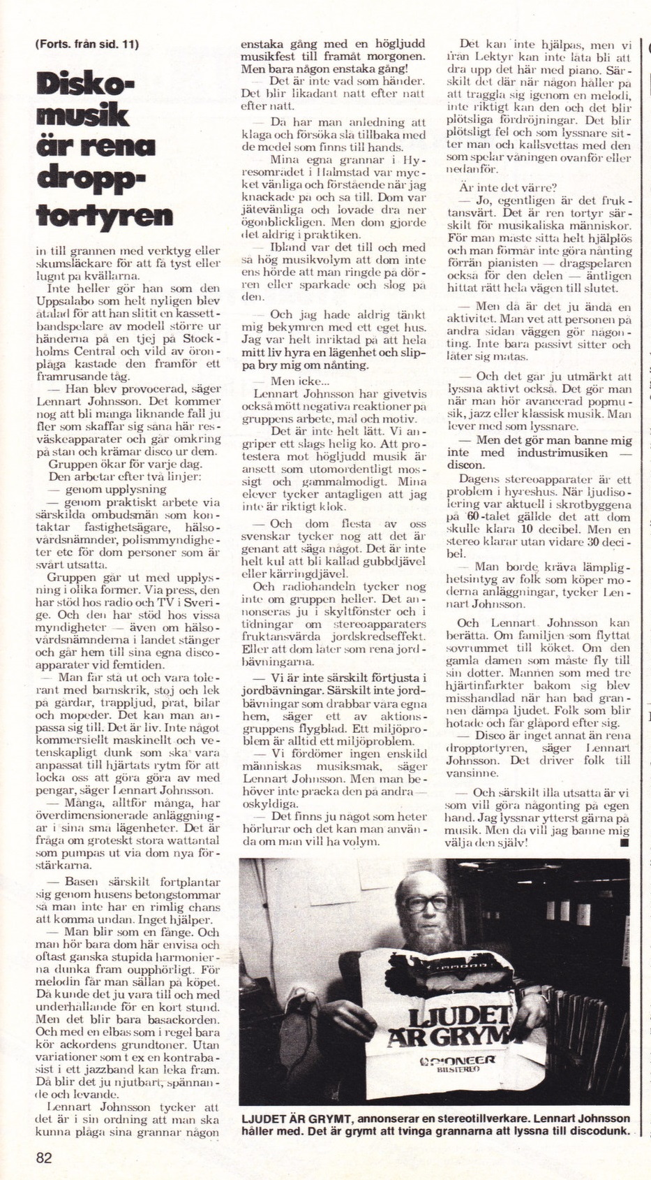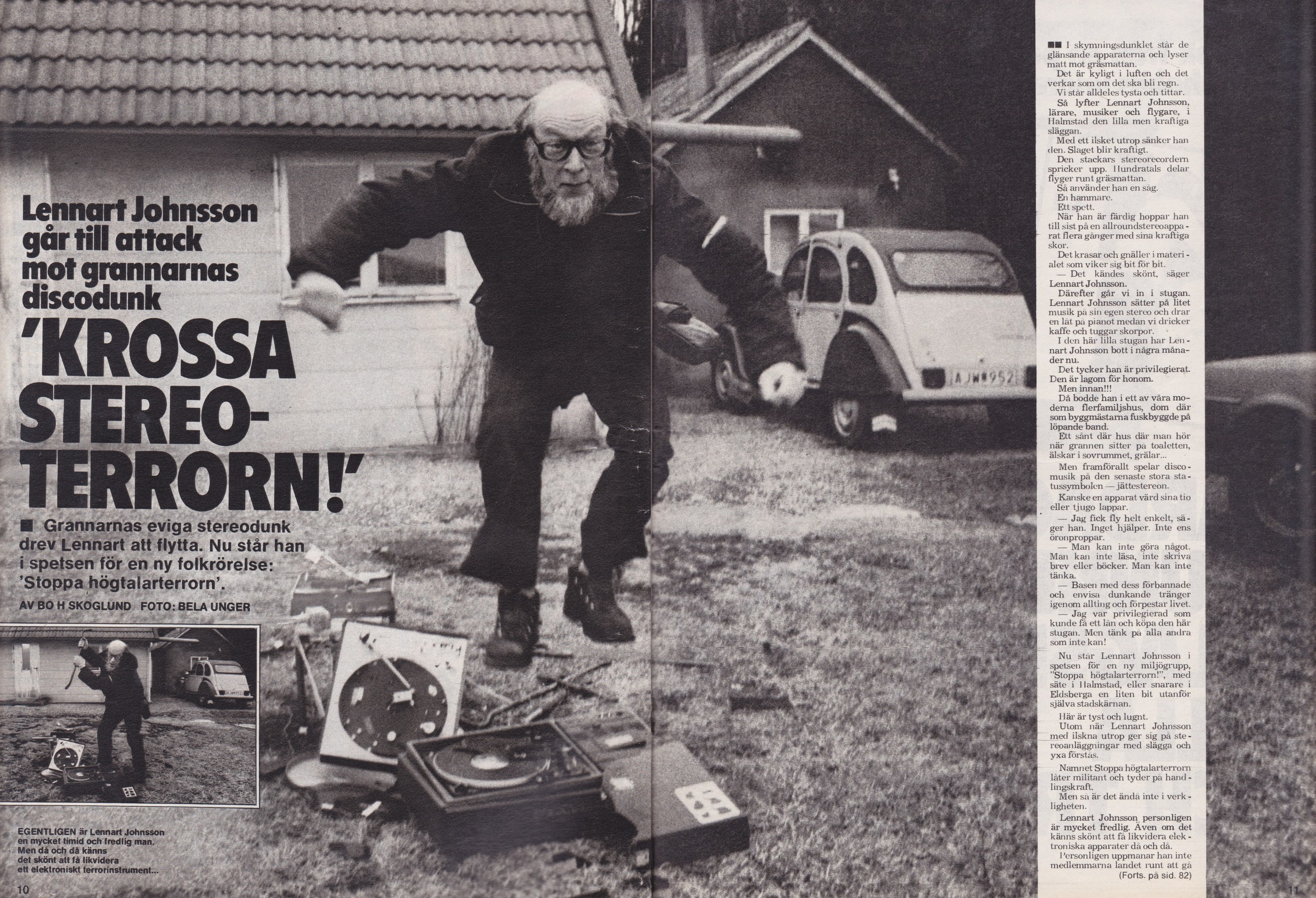 I nr 19 1981 av den samhällskritiska tidskriften Lektyr så publicerades det en liten artikel om en miljögrupp som har bildats i Halmstad. Namnet på gruppen är ”Stoppa högtalarterrorn” och den ledas av nestor Lennart Johnsson som har ett brutalt och välansat skägg.