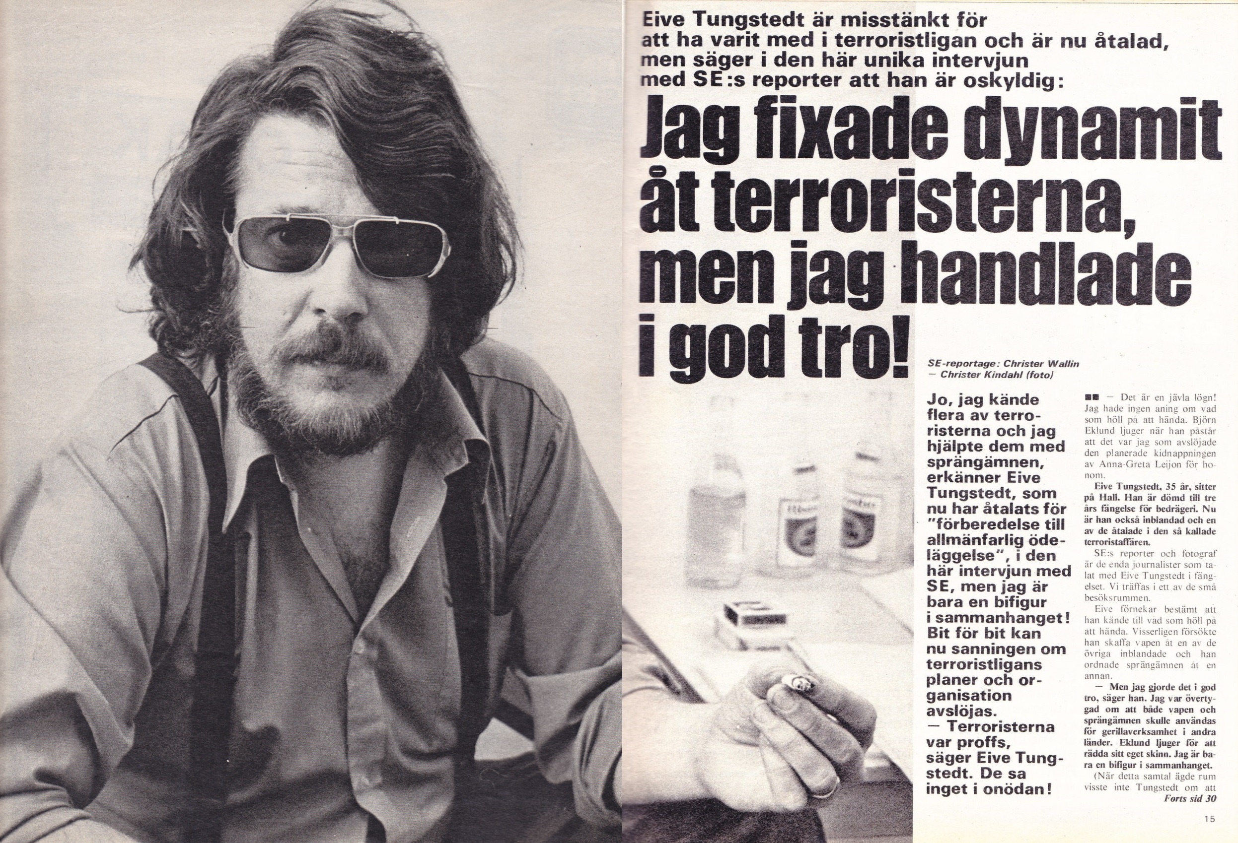 Kring denna röra hamnar en del svenska personer, bland annat en riktigt hal lirare vid namn Eive Tungstedt. Han verkar både ha varit författare, jurist men även pysslat med en hel del tvivelaktiga affärer. I tidskriften Se nr 32 1977 ger han sin bild på hur han hamna kring terroristligan.