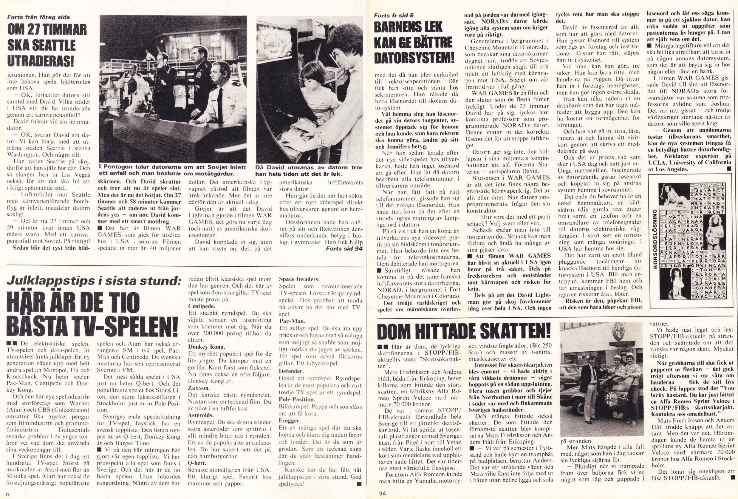 Jag vet inte vad som är bäst med denna artikeln från STOPP Fib aktuellts julnummer (nr 51-52) 1983. Den härliga huvudartikeln kring filmen War Games och de eventuella liknelserna med verkligheten. Eller den korta artikeln om STOPP Fib aktuellts gamers lista över de bästa spelen på marknaden. Tittar man på den listan i dag så är det en klockren klassikerlista!