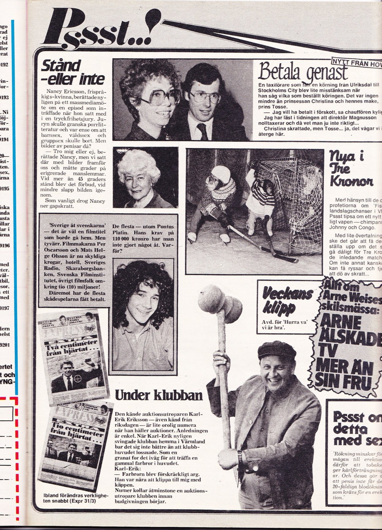 Eftersom det är fredag så bjuder jag på något lite extra. Tidskriften Lektyr hade vid denna tiden (1981) en ”skvaller-hörna” där allt möjligt kom fram. I nr 16-17 1981 så var det en kort notis att Pontus Platin inte fått betalt när han medverkar i filmen Sverige åt svenskarna.