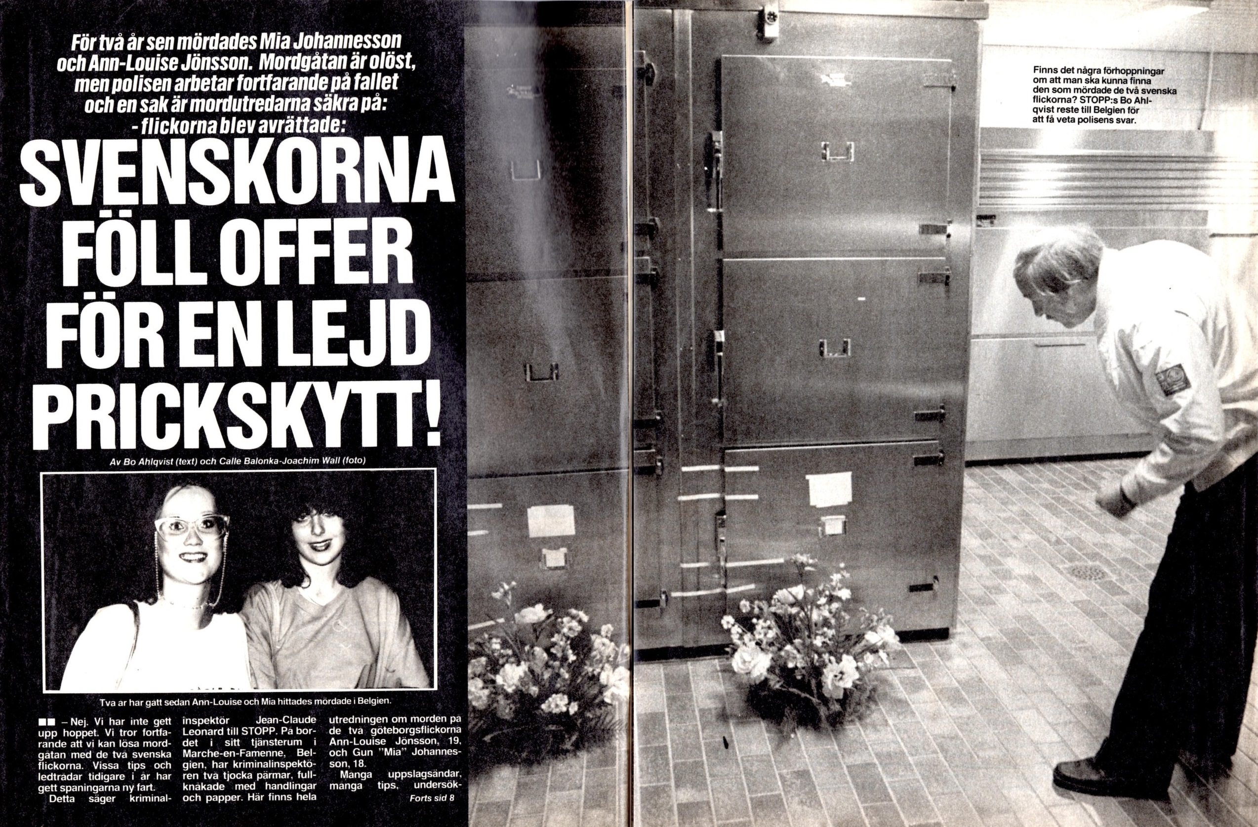 I veckans stopp nr 21/22 1982 så tar kriminaljournalistikens överkam numero uno (och överdängare när det gäller bra artiklar), Bo Ahlqvist upp fallet med de två svenska tjejerna Ann-Louise Jönsson och Gun ”Mia” Johannesson som blev mördade 8:e Maj 1980 i den lilla byn Samrée som ligger i Belgien. De båda tjejerna, 19 respektive 18 år var på en liten semestertripp från hemstaden Göteborg när de mötte deras baneman.