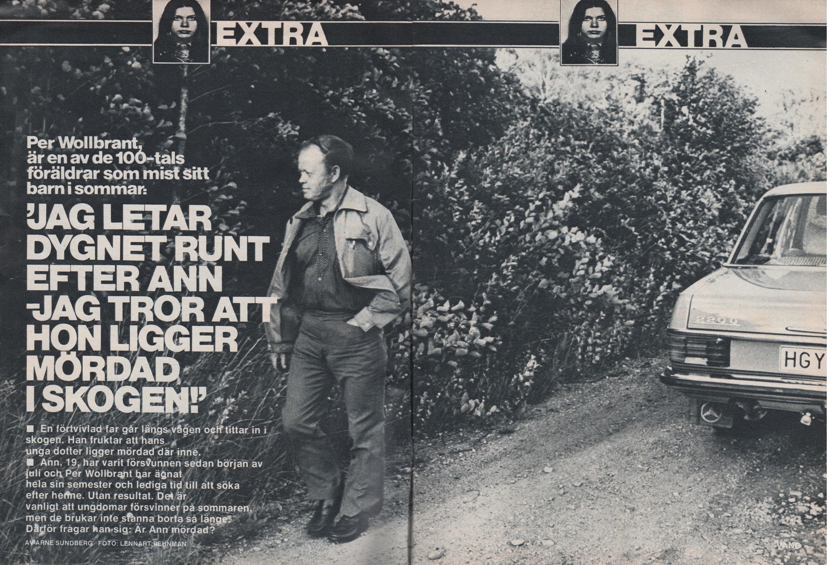 6:e Juni 1974 så försvann 19-åriga Ann Wollbrant efter ha varit på dans i Kungälv folkets park. Några månader senare, i början av augusti, så skrev Lektyr i nr 32 om Per Wollbrant tröstlösa letande efter sin dotter. (Tryckfelsnisse är framme två gånger i artikeln. Ann försvann 6:e Juni, inte Juli.)