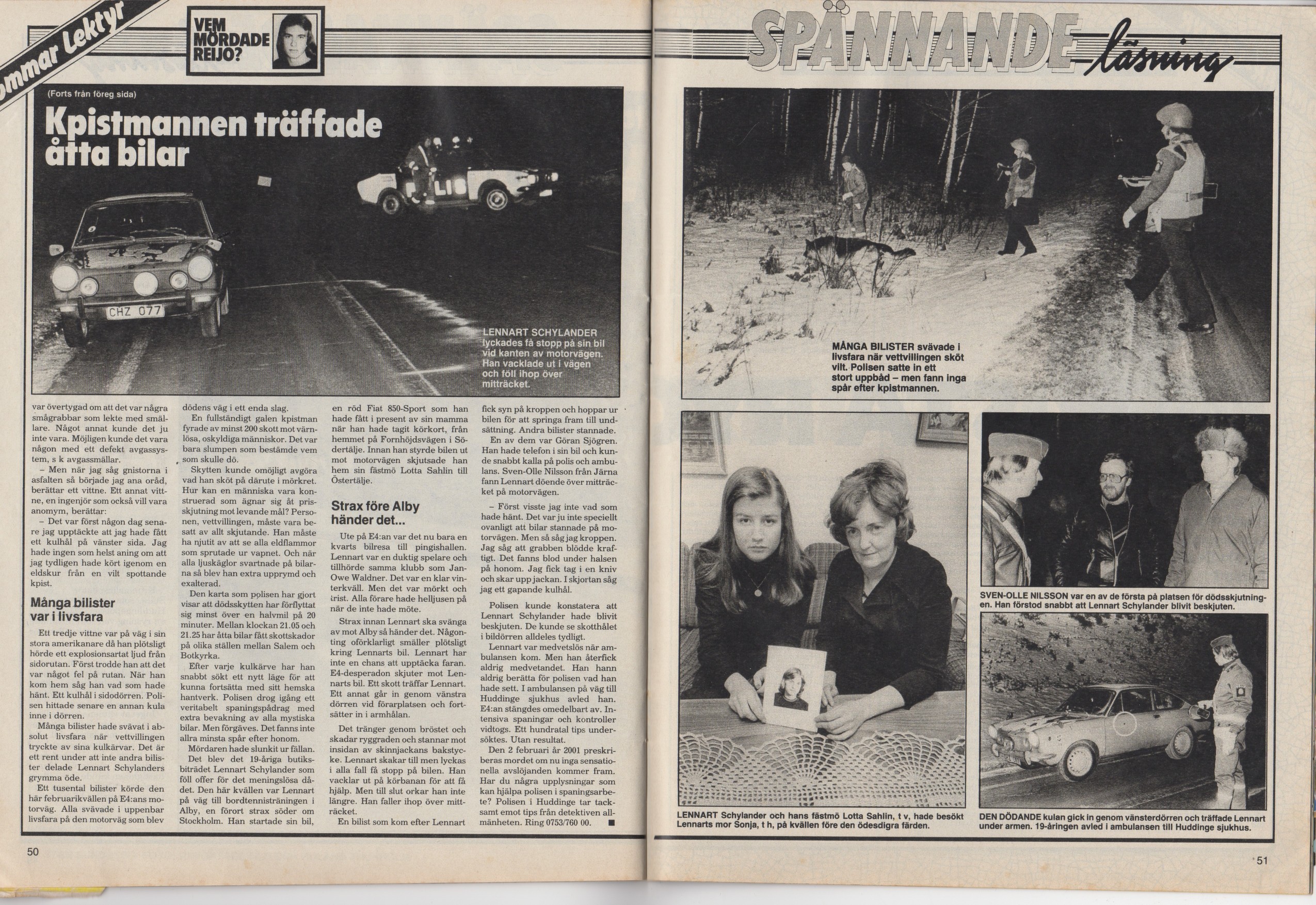 I början av februari 1976 så hände två vansinnesdåd direkt efter varandra. Den 1:a februari så sköt en värnpliktig ihjäl två personer på klubb Gustavus Adolphus i Göteborg. Dagen efter, den 2:a februari, så skedde ett till vansinnesdåd på E4an mellan Södertälje och Stockholm. 9 st bilar blev beskjutna av någon/några med kpist varav en bil där 19-åriga Lennart Schylander körde blev träffad och dog senare i ambulansen på väg till sjukhuset. Det var ren tur att inte fler dog denna kvällen.