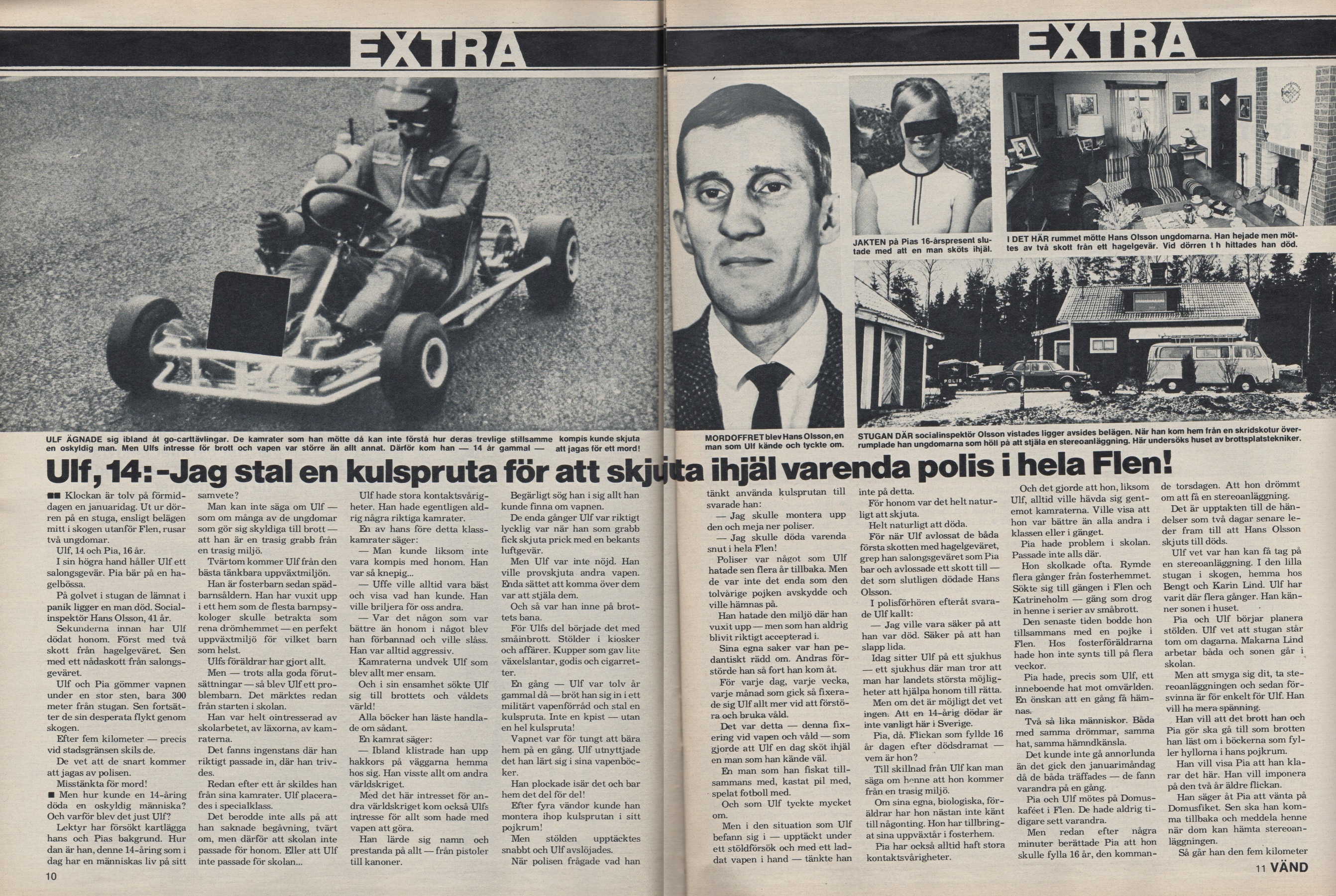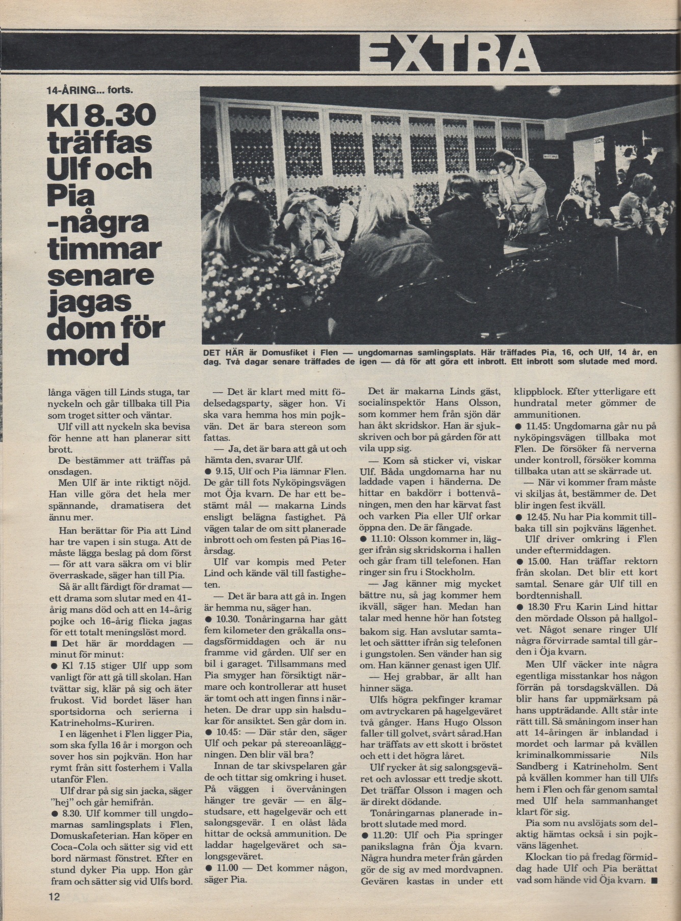 På förmiddagen den 23:e Januari 1974 blev 41-åriga socialinspektören Hans Olsson mördad i sitt hem i Öja kvarn precis utanför Flen. Mördaren var en Lars Andersson som vid mordet var endast 14 år gammal. Lars hade en strulig uppväxt och kände Hans enligt artikeln i Lektyr nr 6 1974. Lars och hans nyfunna vän ”Pia” (enligt flashback heter hon Viola) skulle stjäla en stereo hos Hans men det hela slutade med ett fruktansvärt mord.