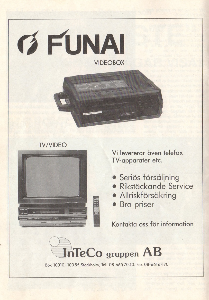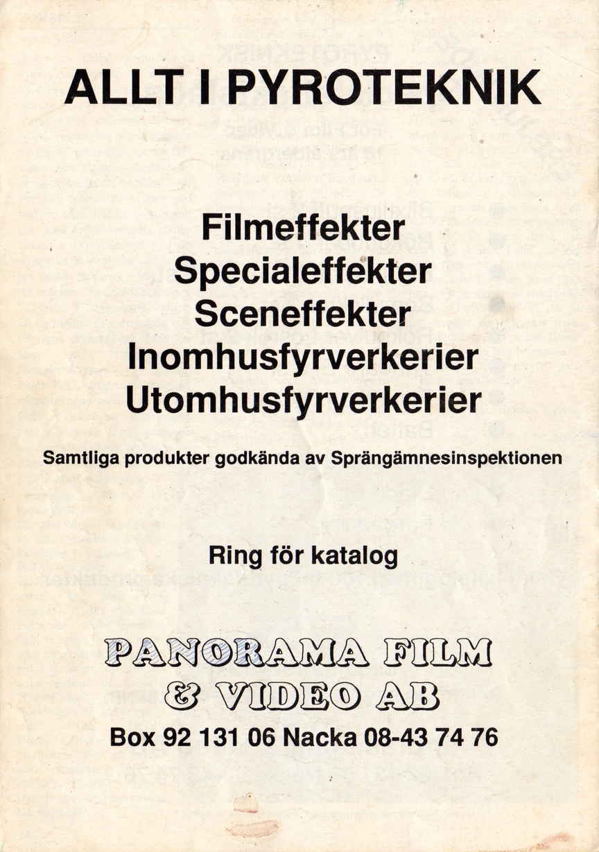 Jag har valt att återge även reklamen från bilagan, och har bara klippt ihop artiklarna för att man lättare ska kunna läsa dem. Så fram med lite läsk och kanelbullar, här kommer en nostalgikick för alla gamla skräckfilmsnördar.