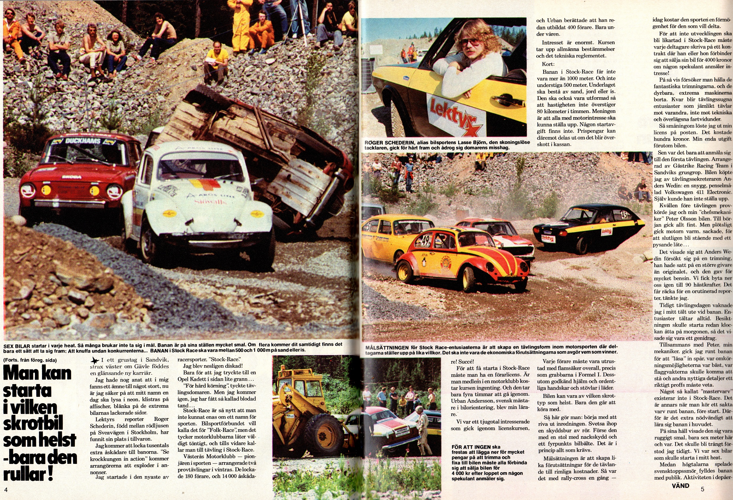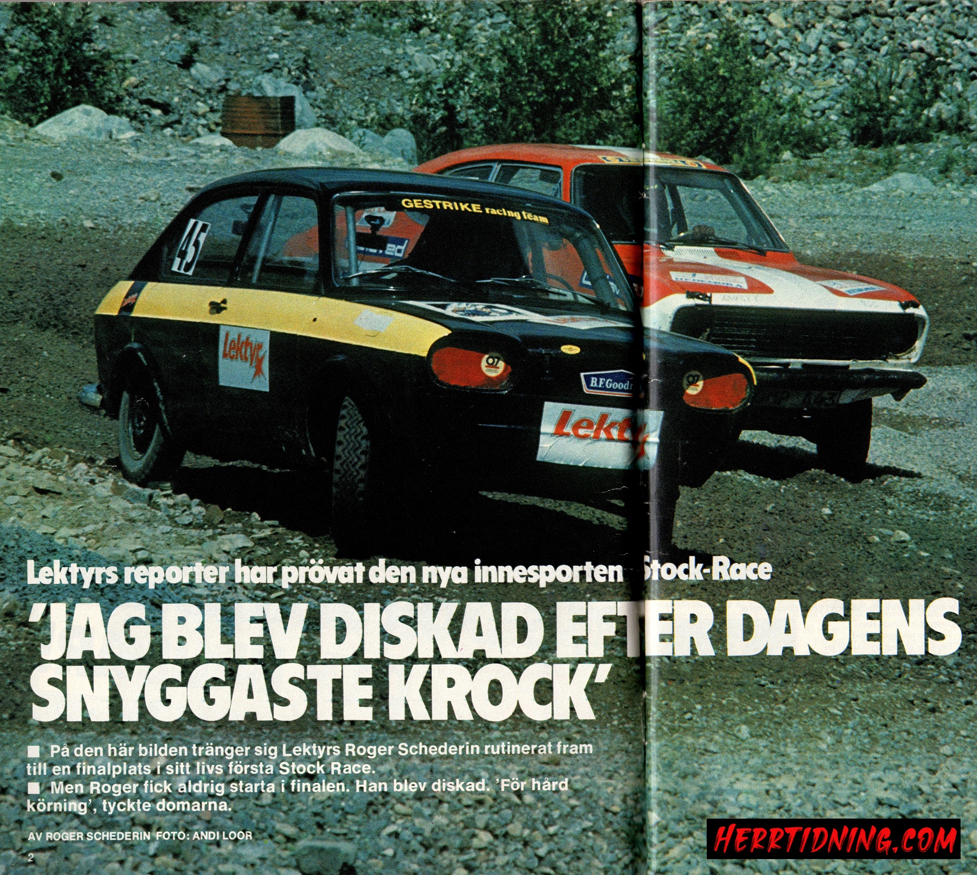 Så luta tillbaka och njut av journalisten Robert Schederin reportage där han testar Stock race i en ”grusgrop” i Sandviken som publicerades i Lektyr nr 36 1981 med fotografens Andi Loor grymma bilder.