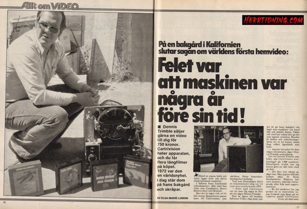 Det är en intressant historia som Dennis Trimble från Advance video i San José som köpte upp konkurslagret efter Cartrivision berättar för journalisten Else-Marie Lundin.