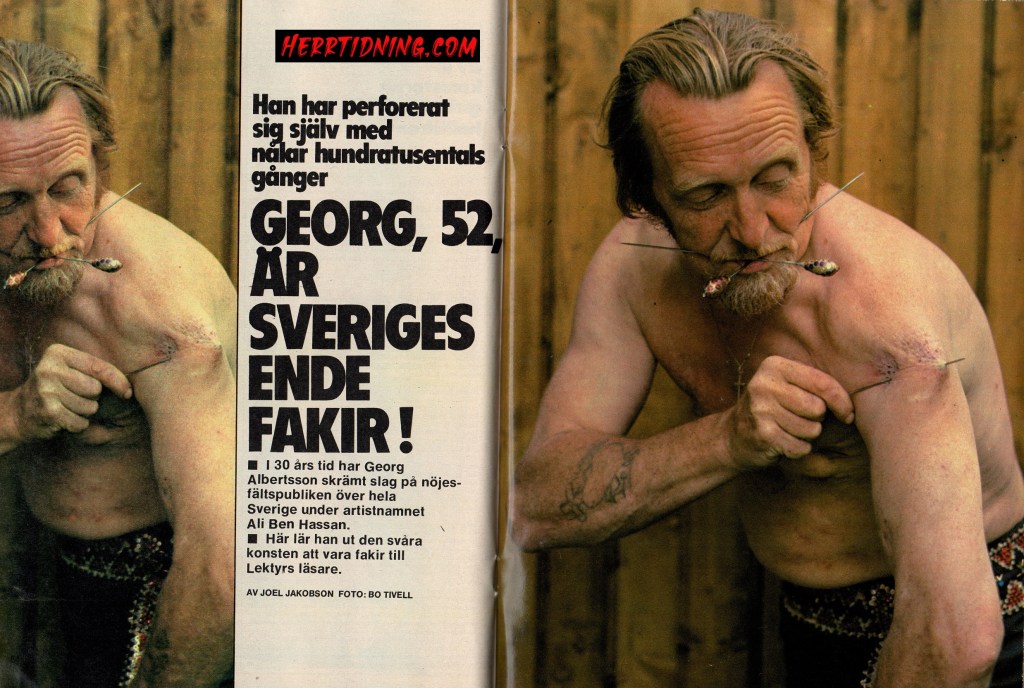 Ali Ben Hassan, eller under hans riktiga namn Georg Albertsson, var en känd fakir som reste runt i Sverige och uppträdde under 50- 60- och 70-talet, bland annat på Kiviks marknad. Lektyr gjorde ett litet reportage om Hassan i nr 44 1981 där han klagade på att porrens intåg på marknaden skrämmer iväg kunderna.