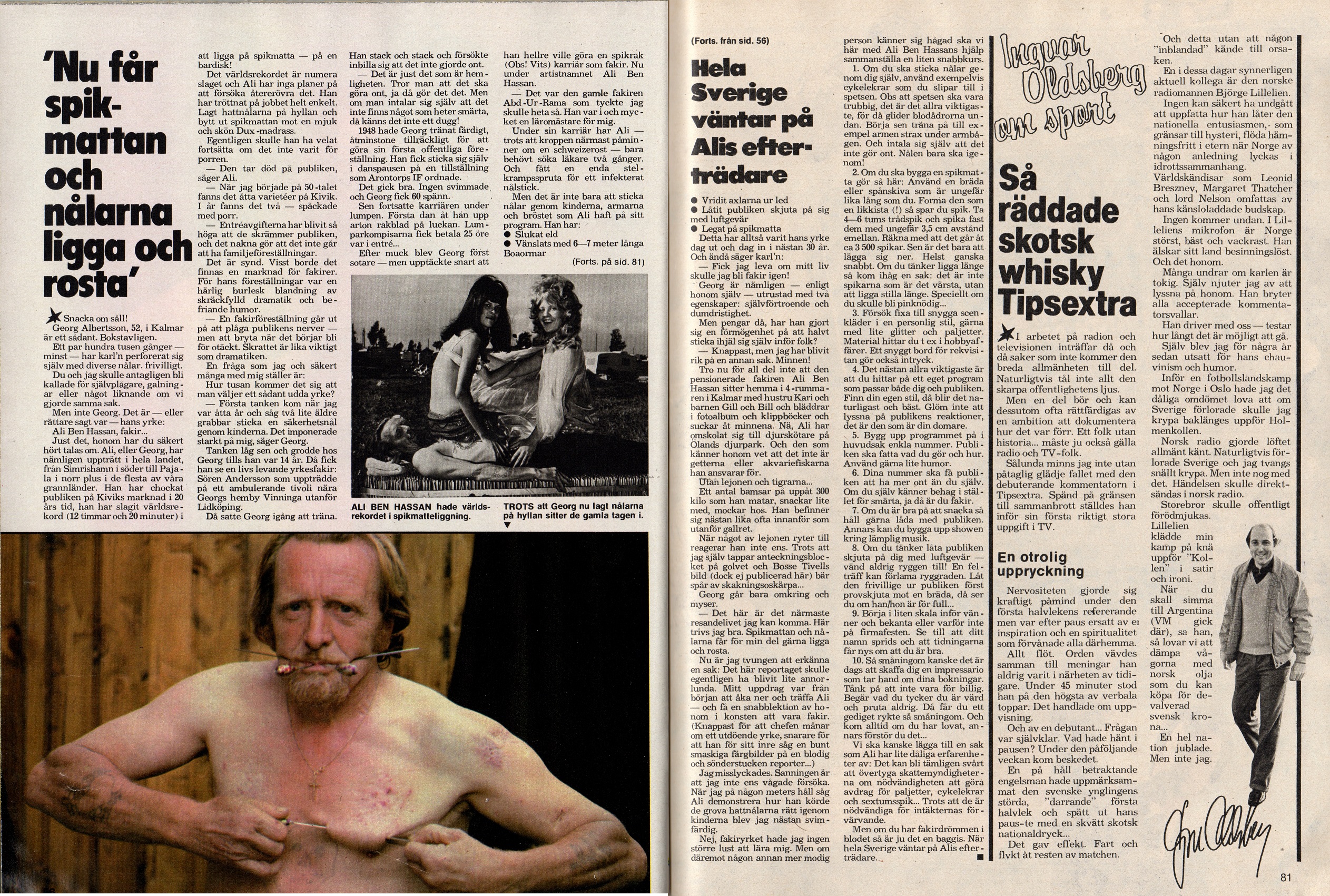 Artikel slutar med en liten fakirskola från Hassan och Lektyr som är både fascinerande och kul läsning så här dryga 40 år senare. Speciellt tipsen om att hur man ska bli skjuten med ett luftgevär av publiken.