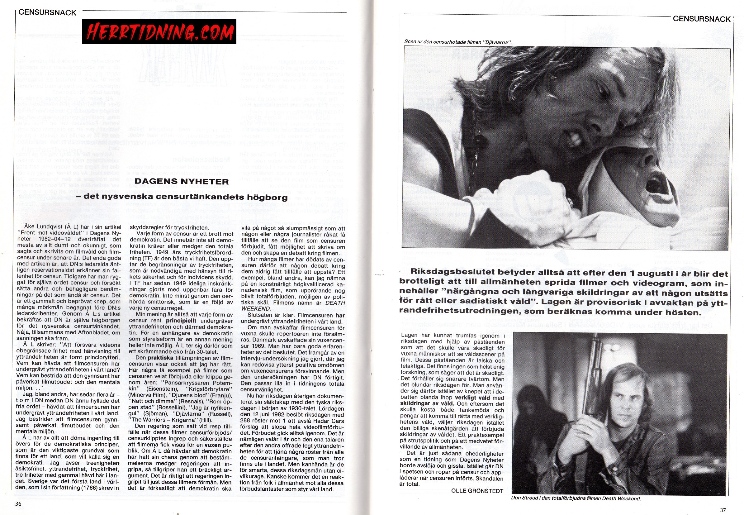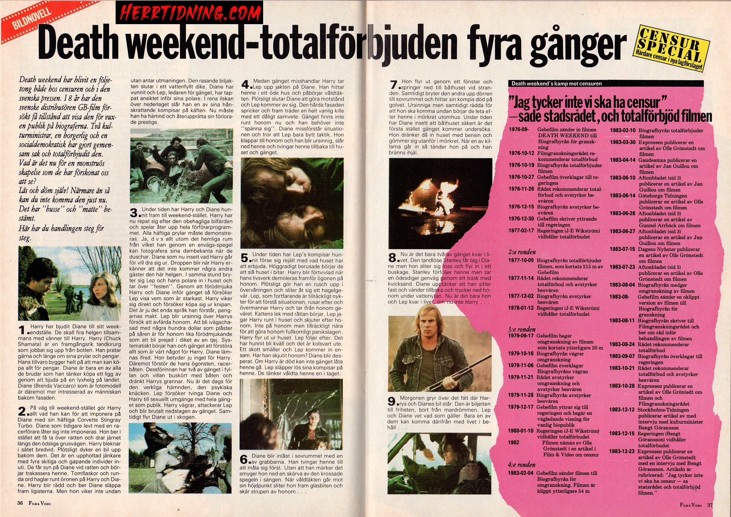 I artikeln om GeBefilms kamp att få igenom Death weekend står det om Olle Grönstedt artikel i Film & video nr 6 1982, så jag lägger till den här som en liten bonus.