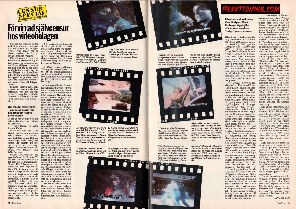 Jan Larsson (The Resurrection of Michael Myers 1 & 2, Sex, lögner och videovåld) tar upp på två sidor om problemet med videobolag som klipper filmer själva, bland annat från censurkort från Statens biografbyrå men som ibland blandat ihop korten och filmen fel.