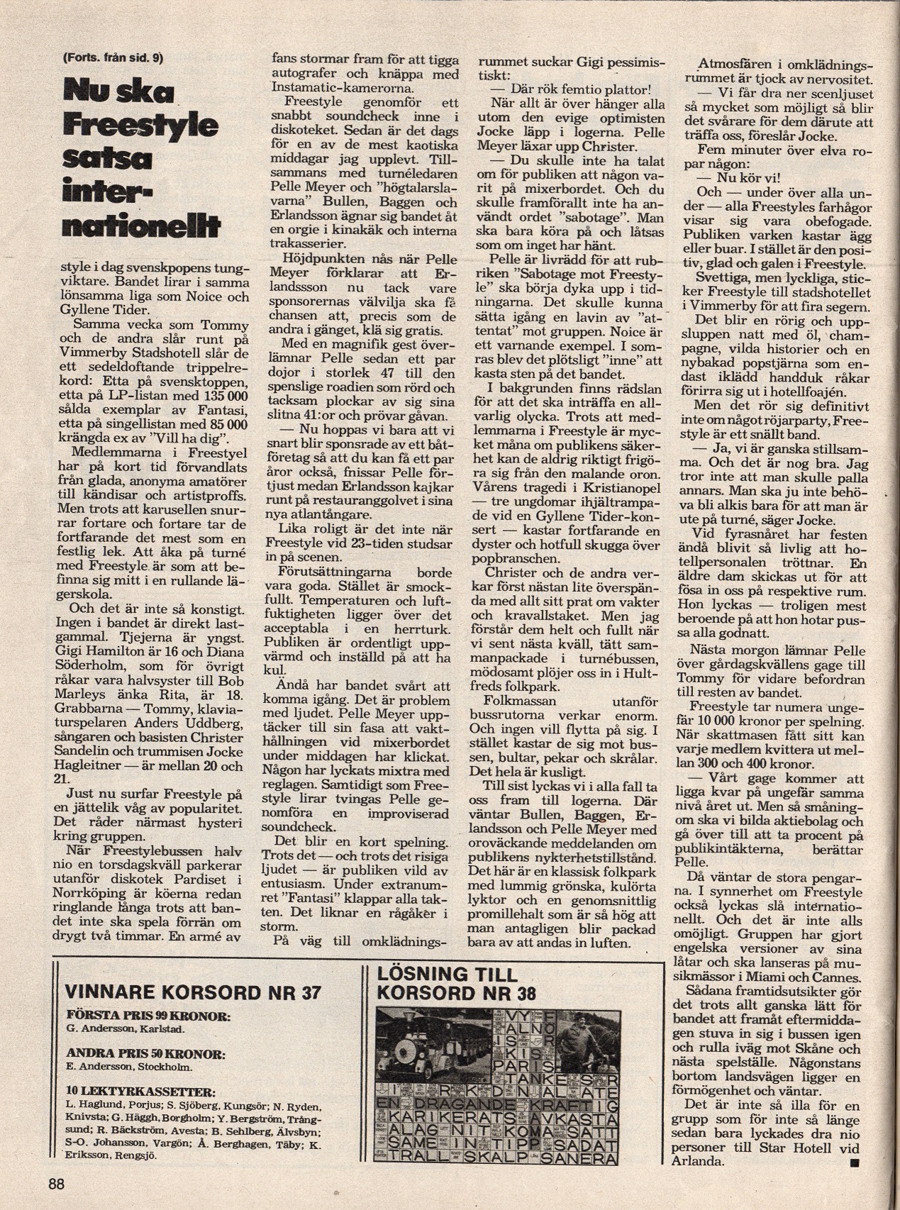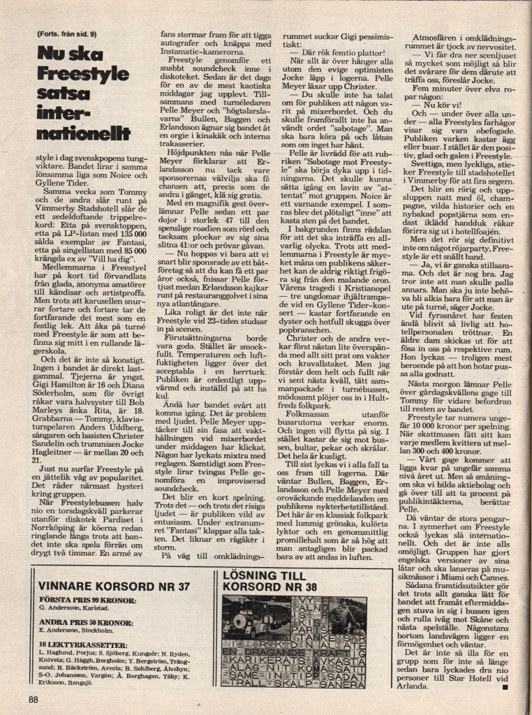 1981 så slog bandet Freestyle igenom med singlar som ”Vill ha dej” och ”Fantasi” från plattan Fantasi. På turnén följde journalisten Per Svensson med och i Lektyr nr 42 1981 så publicerade han en kortare artikel om detta. Rätt lättsam artikel med en del kul bilder. Mycket nöje.