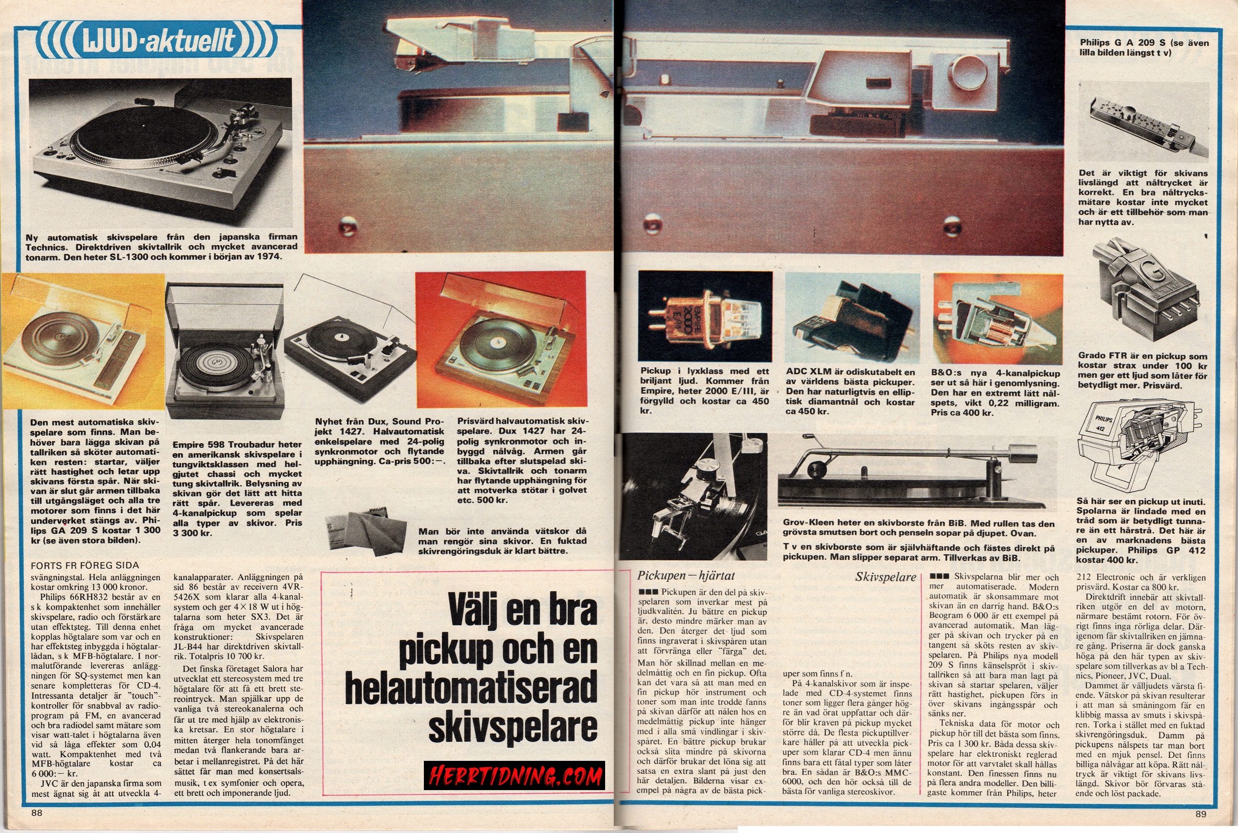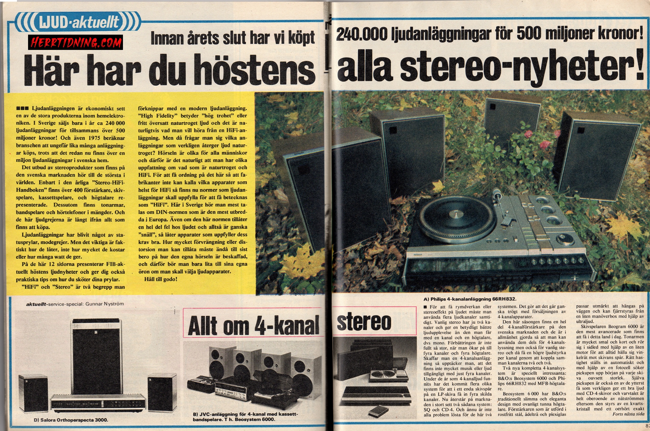 För en ljudnörd så är det ren porr att kolla gamla artiklar och bilder på ljudprylar. Journalisten Gunnar Nyström kollar upp höstens nyheter 1974 i Fib aktuellt nr 49. Det är 4-kanalsstereo, skivspelare, högtalare, rullbandspelare och framtidens ljud och bild med laser i Philips VLP-skivspelare (vilket senare blev laserdisc). Jag la även med en liten bonus i slutet. Mycket nöje.