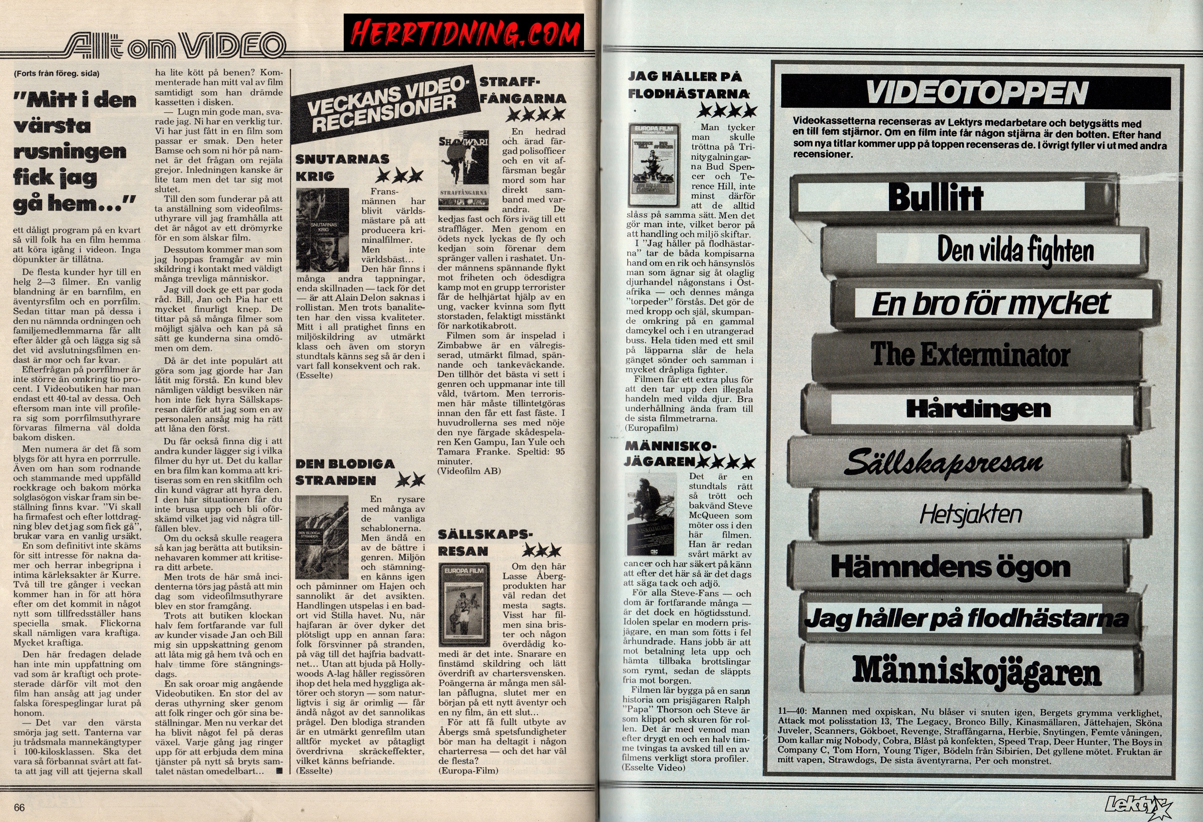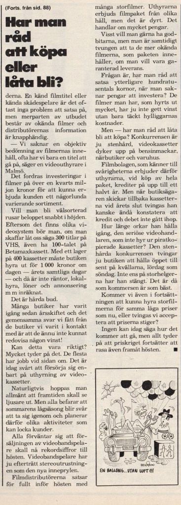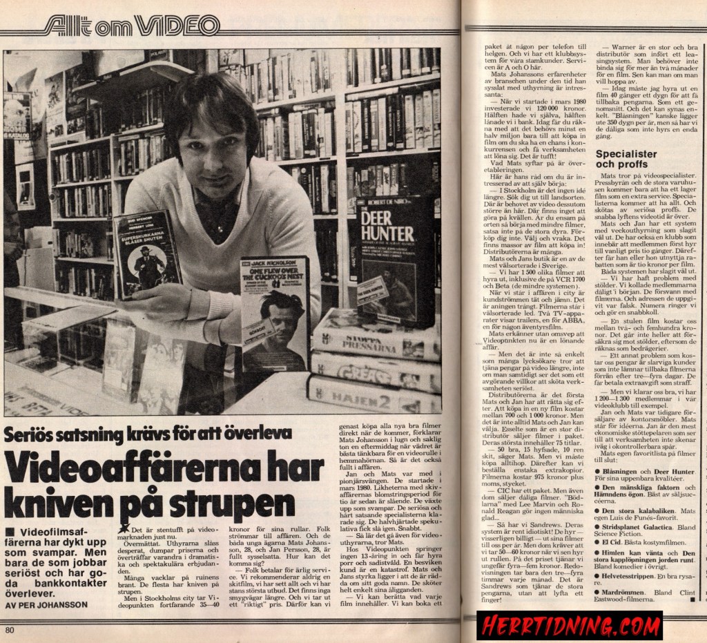 I Lektyr nr 1 1982 så hälsar journalisten Per Johansson på Mats Johansson och Jan Persson som har butiken Videopunkten i Stockholm city. De lyfter också problemet med överetablering och jag gillar Mats kommentar ”Hos videopunkten springer ingen 13-åring in och får hyra porr och sadistvåld.”