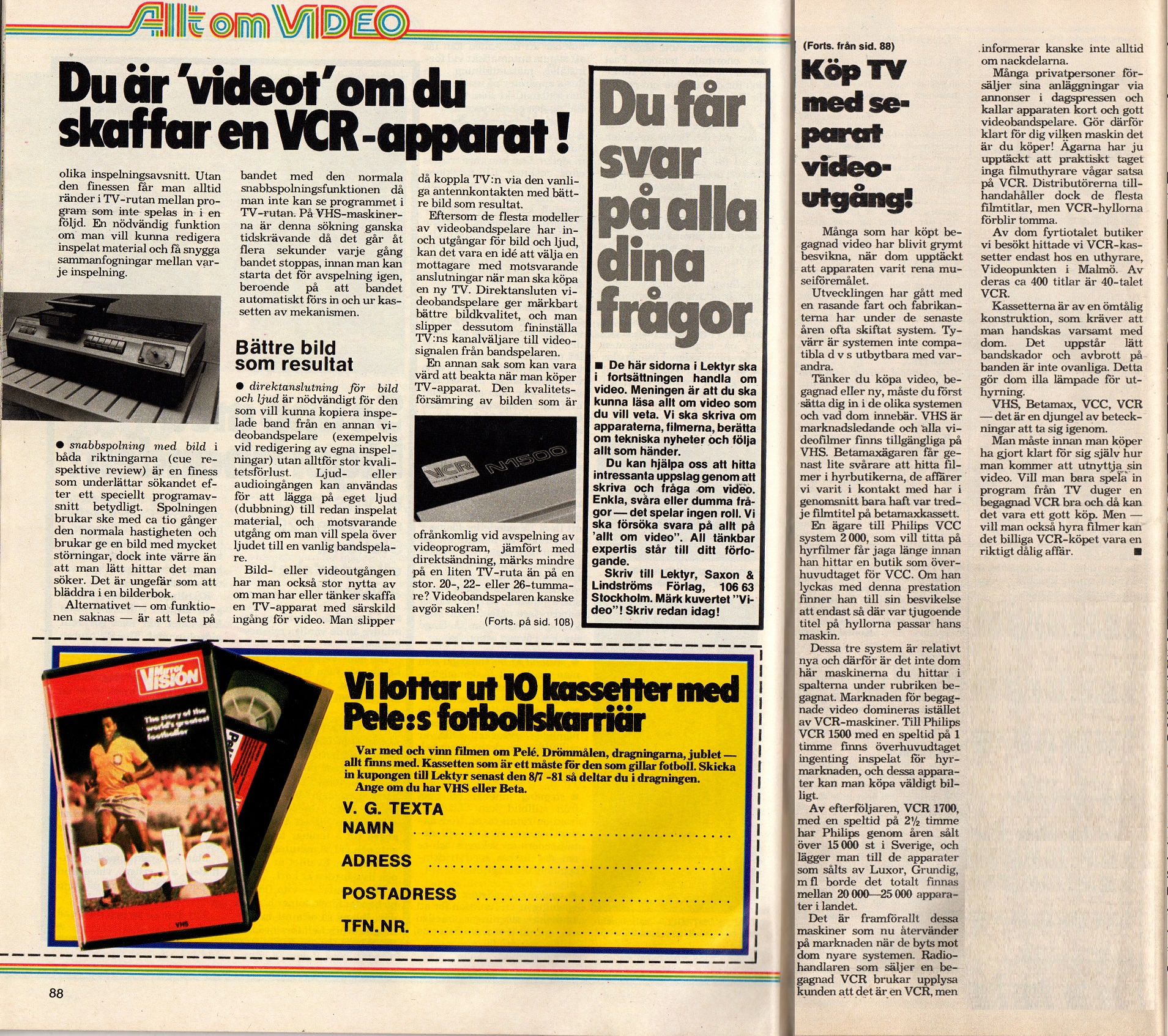 I början av 80-talet, när videon slog igenom, så hade alla seriösa tidningar (vilket självfallet Lektyr räknas som) sektioner i tidningen eller återkommande artikelserie med tips kring video. Vad man ska välja, vad betyder alla dessa krångliga ord som ”fast forward”, och vilka filmer som var värda att hyra.