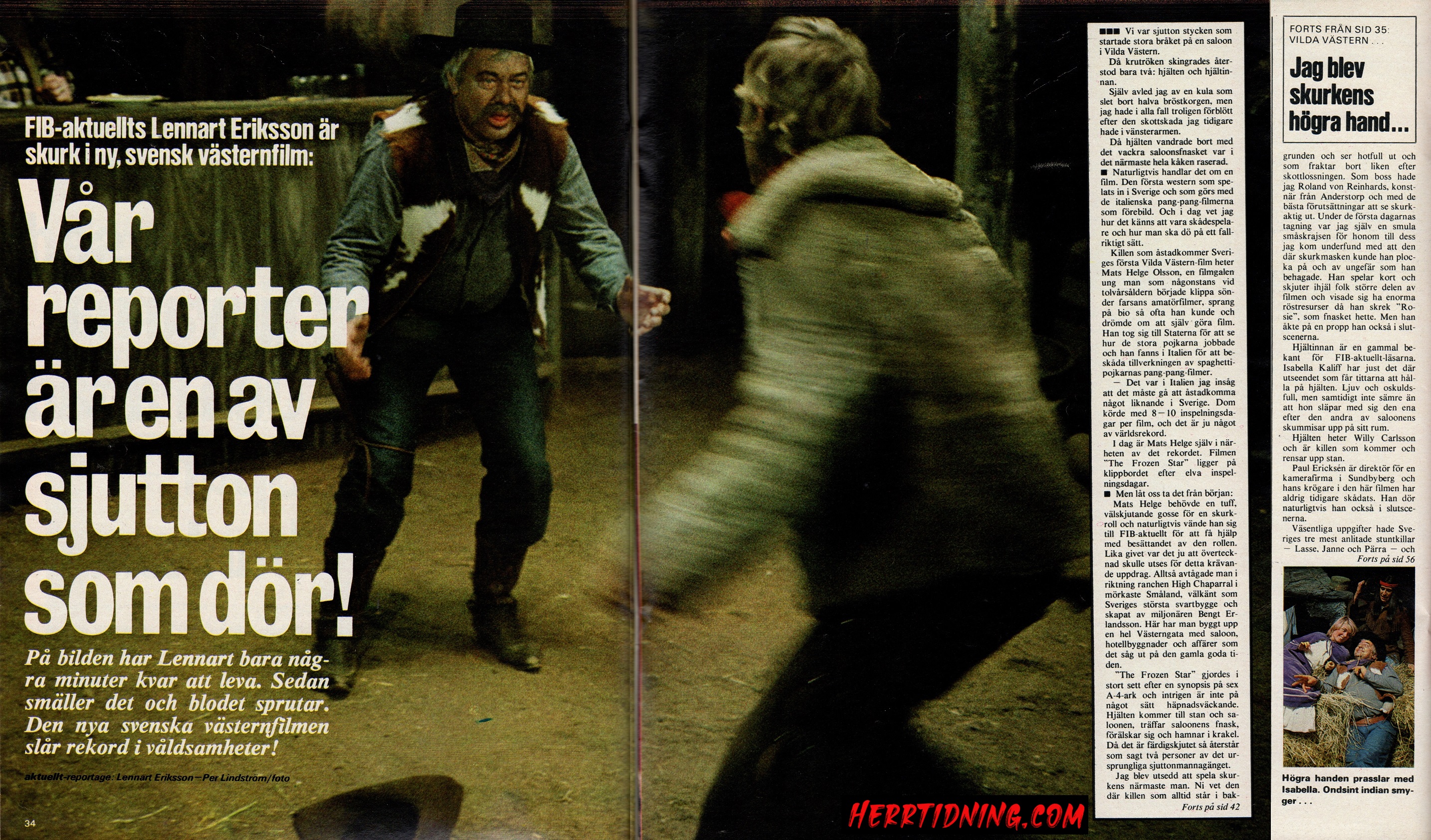 I Fib aktuellt nr 17 1974 så skriver journalisten Lennart Eriksson om när han var med på inspelningen av The frozen star som skurk.