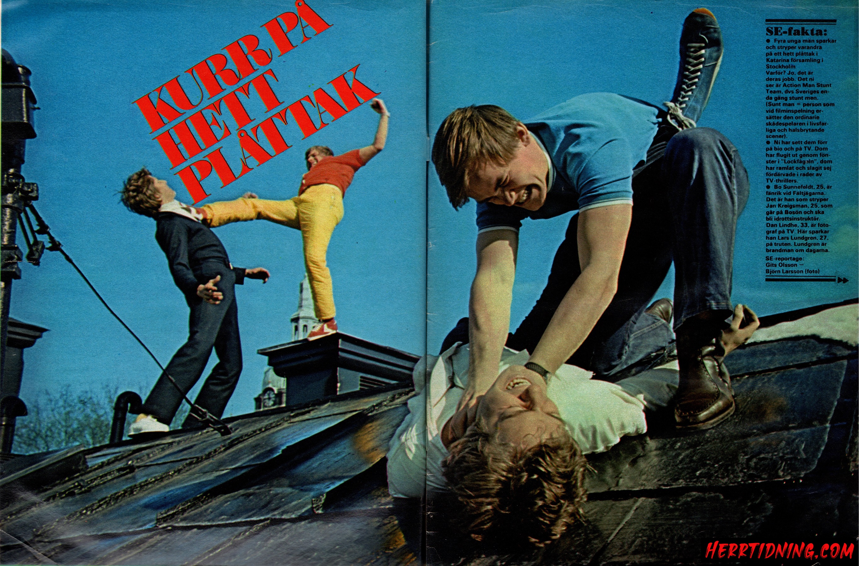 I tidningen Se nr 14 1972 så är journalisten Gits Olsson och fotografen Björn Larsson och besöker fyra unga killar som kallar sig ”Action Man Stunt Team”. Det är 25-åriga Bo Sunnefeldt, 33-åriga Dan Lindhe, 25-åriga Jan Kreigsman och 27-åriga Lars Lundgren. De visar upp sina kunskaper i ett par grymt sköna 70-talsbilder. Bara spana in sparken med de gula jeansen!