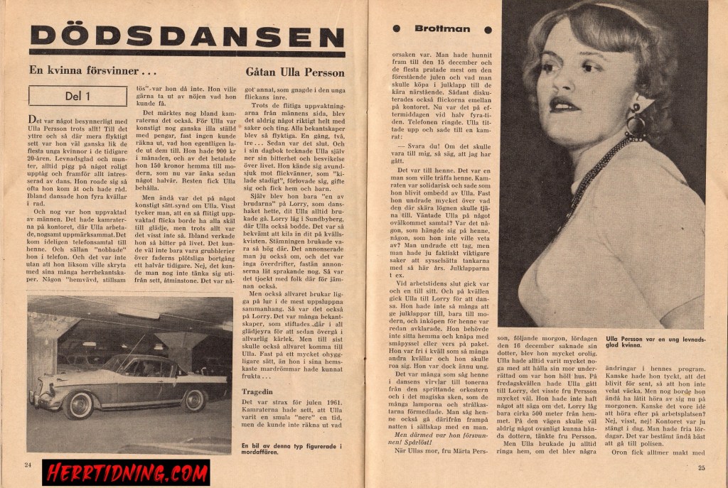 1961 så är Ulla Persson en 25-årig ung tjej som bodde hemma hos sin mor som nyligen blivit änka. Hon jobbar på ett kontor och brukar gå ut på kvällen och dansa på den mycket populära dansrestaurangen Lorry i Sundbyberg. Den 15:e december 1961 så gick Ulla till Lorry som vanligt men hon kom aldrig hem igen. När henne mamma märkte att Ulla inte kommit hem så anmälde hon henne som försvunnen den 16:e december.