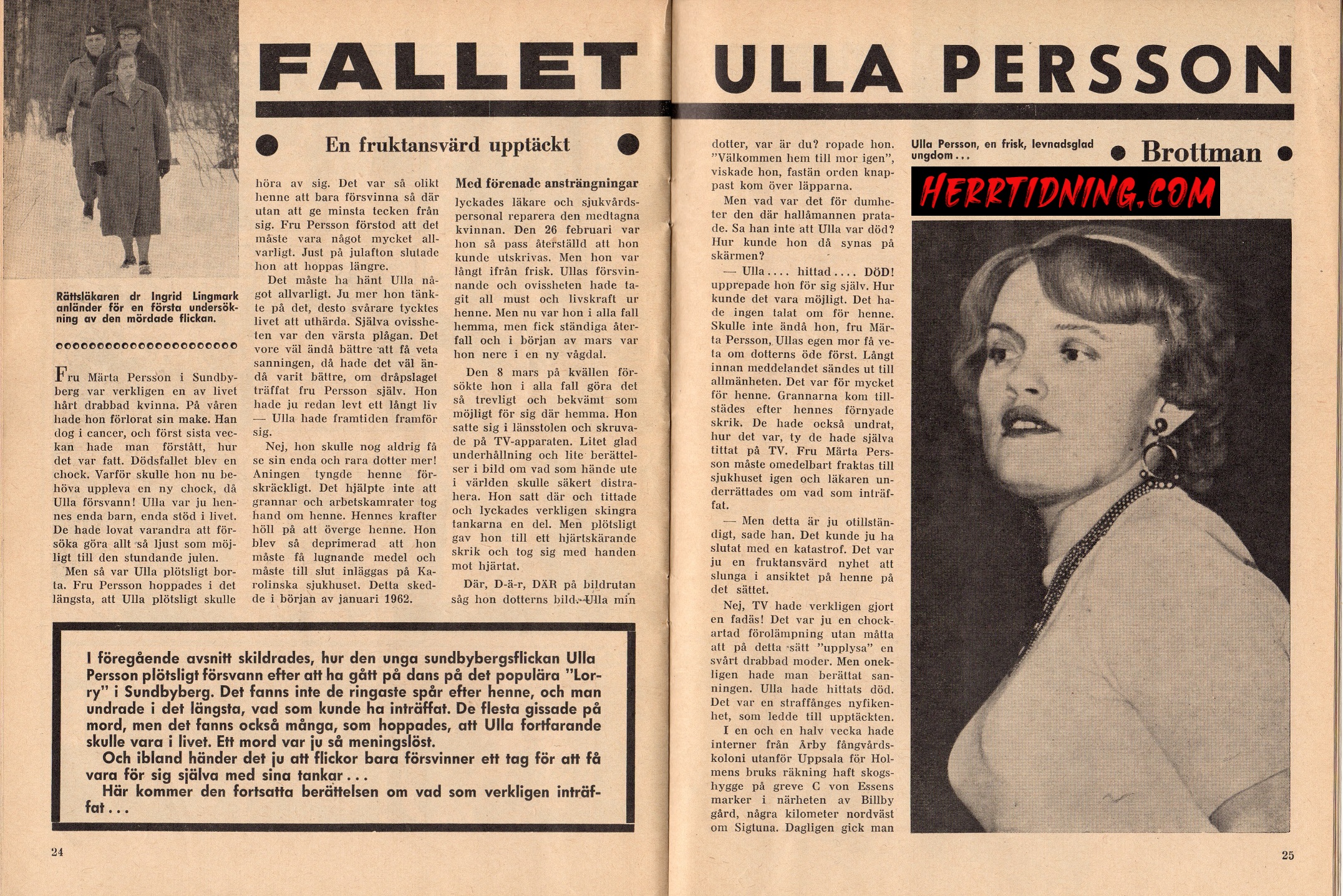 Tidigt i fallets historia så publicerade Kriminaljournalen en tvådelad artikelserie om fallet i nr 23 och 24 1962.