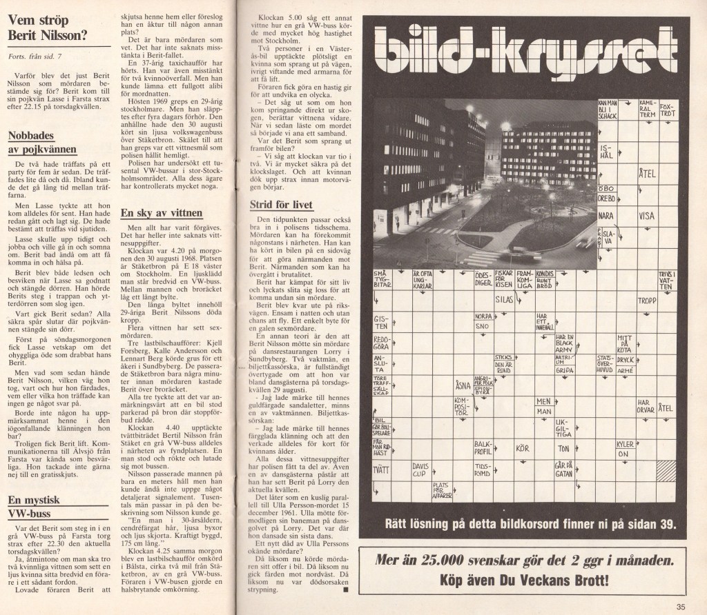 14 år senare (16 år efter mordet) så tar journalisten Tom Berg fallet i Veckans brott nr 8 1984 under serien ”En mördare går lös – Olösta svenska fall”.