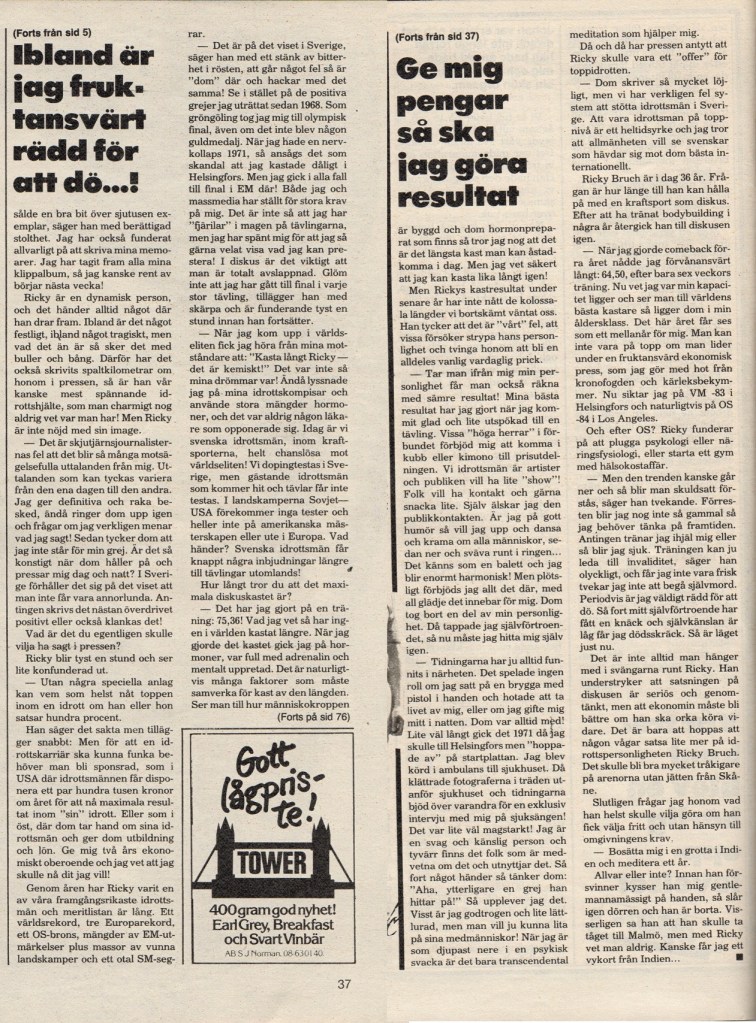 I nummer 43 1982 av Lektyr, under Lindbergs vakande öga, så låter Bruch ”let it all hang out”. Bruch berättar om de ekonomiska svårigheterna med att satsa på idrotten, hur han gillar att knackar sten i gamla gruvor och hur länge till den då 36-åriga Bruch kan tävla i diskus. Mycket nöje.