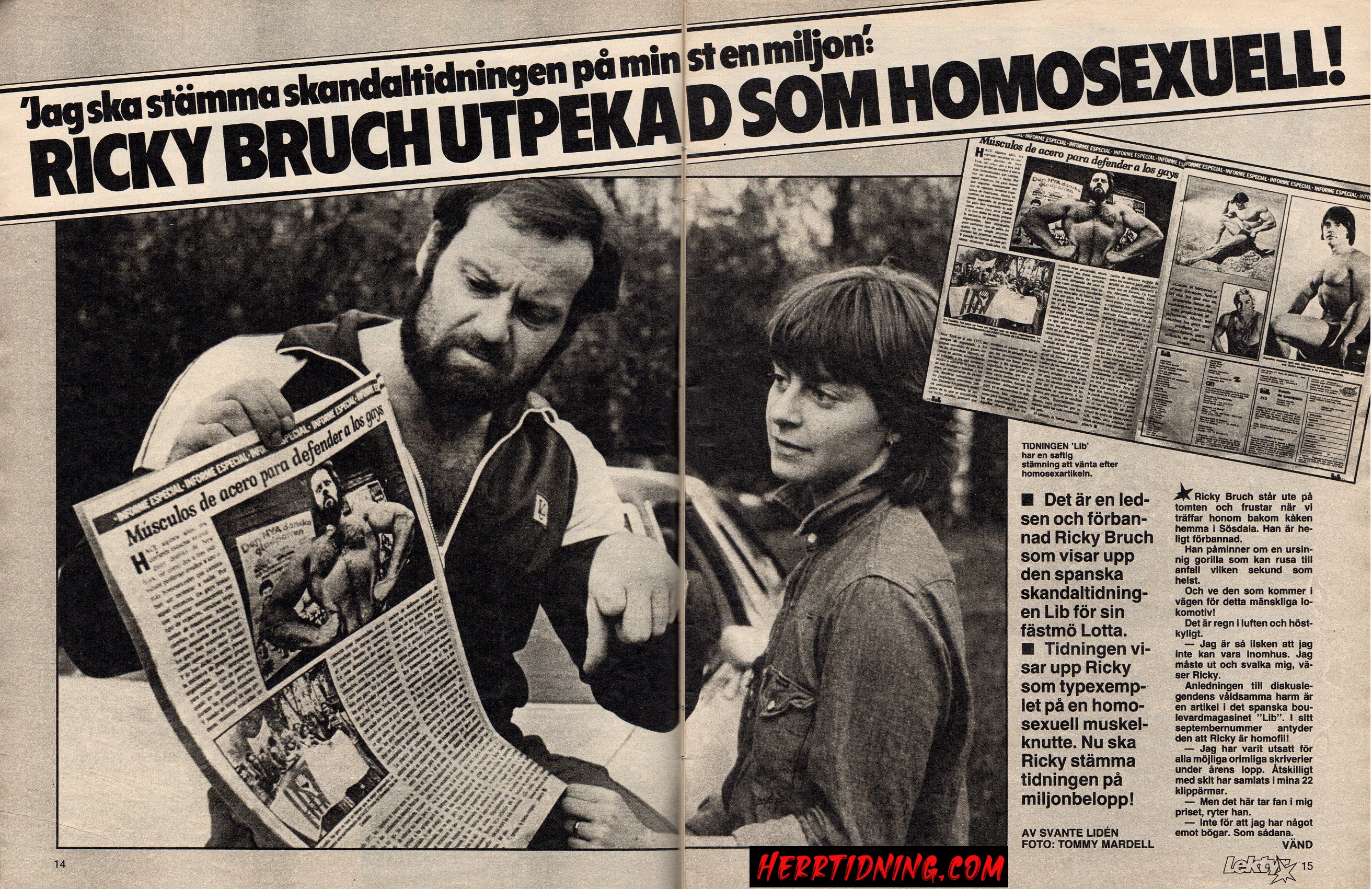 Bruch var ständigt med i media under sina glasdagar. I Lektyr nummer 45 1982 så skriver journalisten Svante Lidén att Ricky Bruch är förbannad att en stor spansk tidning, Lib, har en stor bild på Bruch i en artikel om homosexuella som tröttnar på att bli påhoppade och trakasserade, så de börjar hårdträna för att ge igen. De ”homosexuella muskelknuttar”.