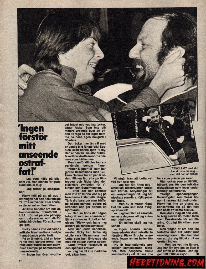 Så här 40 plus år senare så är det ju intressant och se synen på homosexuella då. Bruch lyfter att han inte har något emot homosexuella: ”Låt dom hålla på bäst dom vill. Men blanda för guds skull inte in mig. Jag tränar ju smågrabbar.”