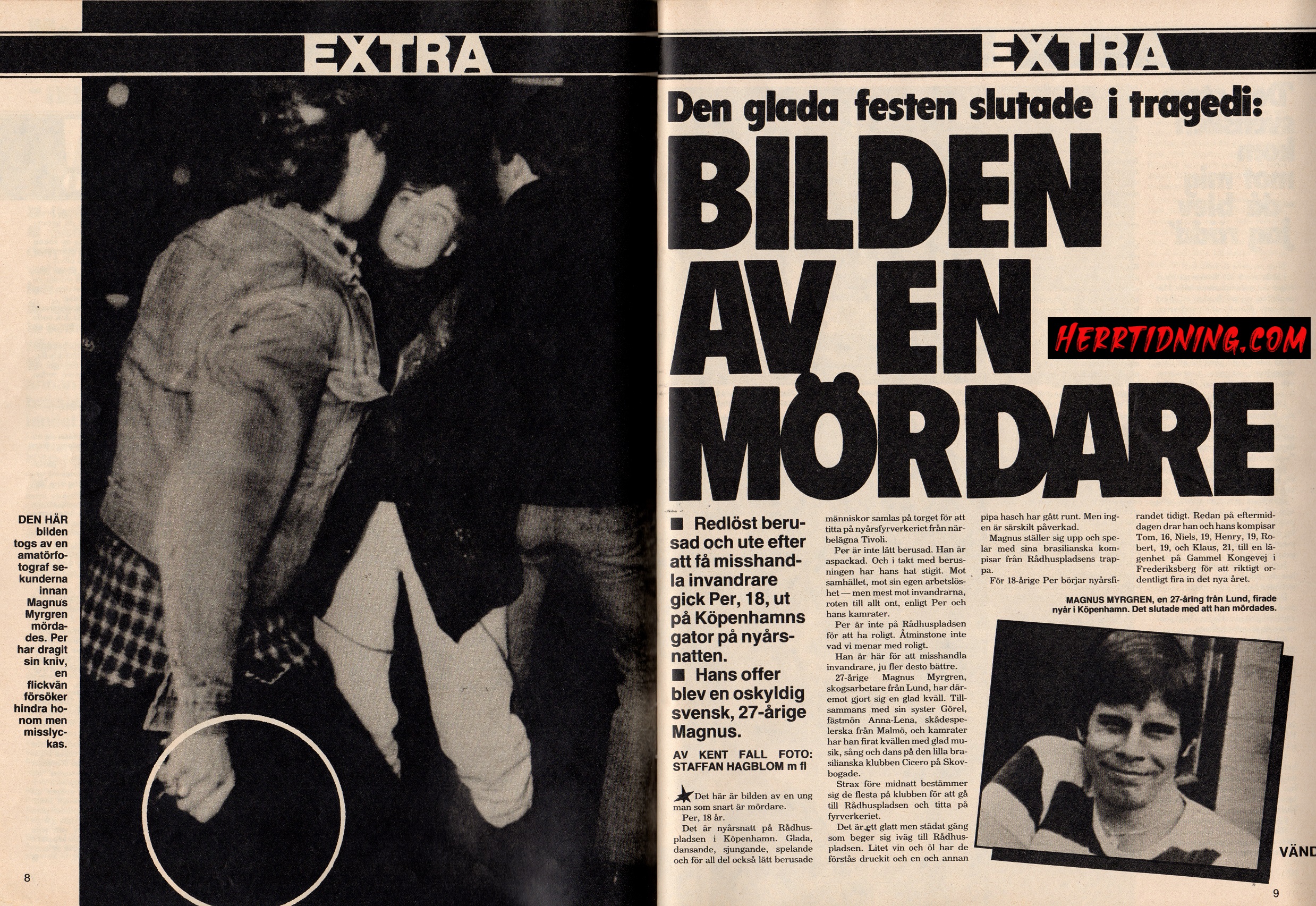 Den 31 december 1982 befann sig den 27-årige svensken Magnus Myrgren i Köpenhamn för att fira in nyåret tillsammans med syster, flickvän och ytterligare fyra kompisar. Kvällen spenderades först på klubben Cicero där de festade och lyssnade på brasiliansk musik. Vid midnatt lämnade de klubben för att dra vidare till Rådhuspladsen och titta på fyrverkerierna från närbelägna Tivoli.
