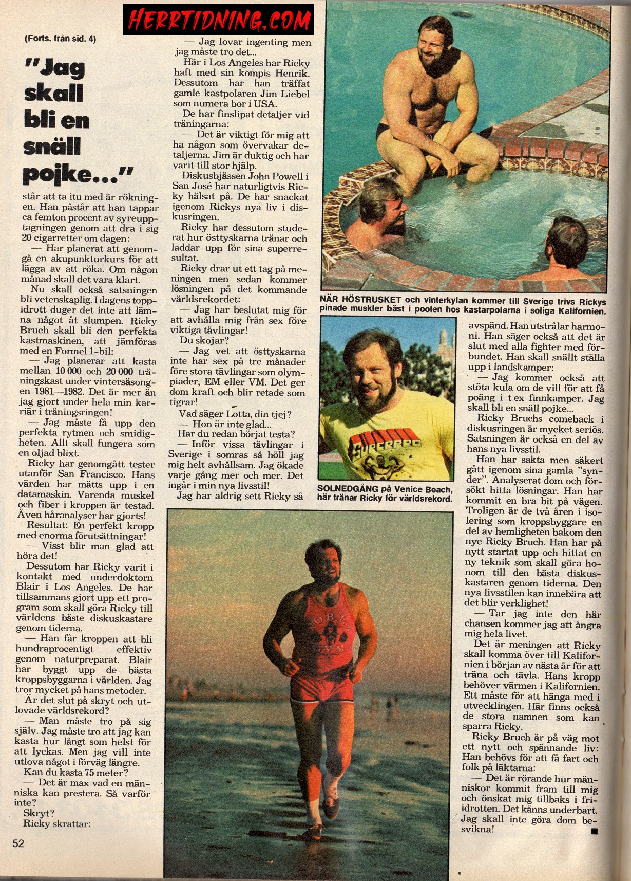 1982, efter ett par års tränade och tävlande i bodybuilding så satsar åter Bruch på diskus. Journalisten Hans Almqvist träffade Ricky i Kalifornien där han hårdsatsade för OS i Los Angeles 1984. Det blir ett samtal om bodybuilding satsningen, hur han bröt ihop när den satsningen raserade och hur han åter igen började träna diskus.