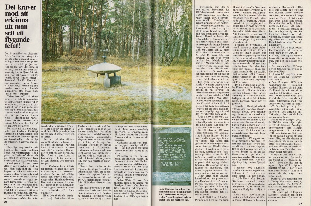 Journalisten Roger Eriksson berättar historien om när Gösta Carlsson mötte ett UFO 18e maj 1946 utanför Ängelholm. Artikeln publicerades i Aktuell rapport nr 11 1982.