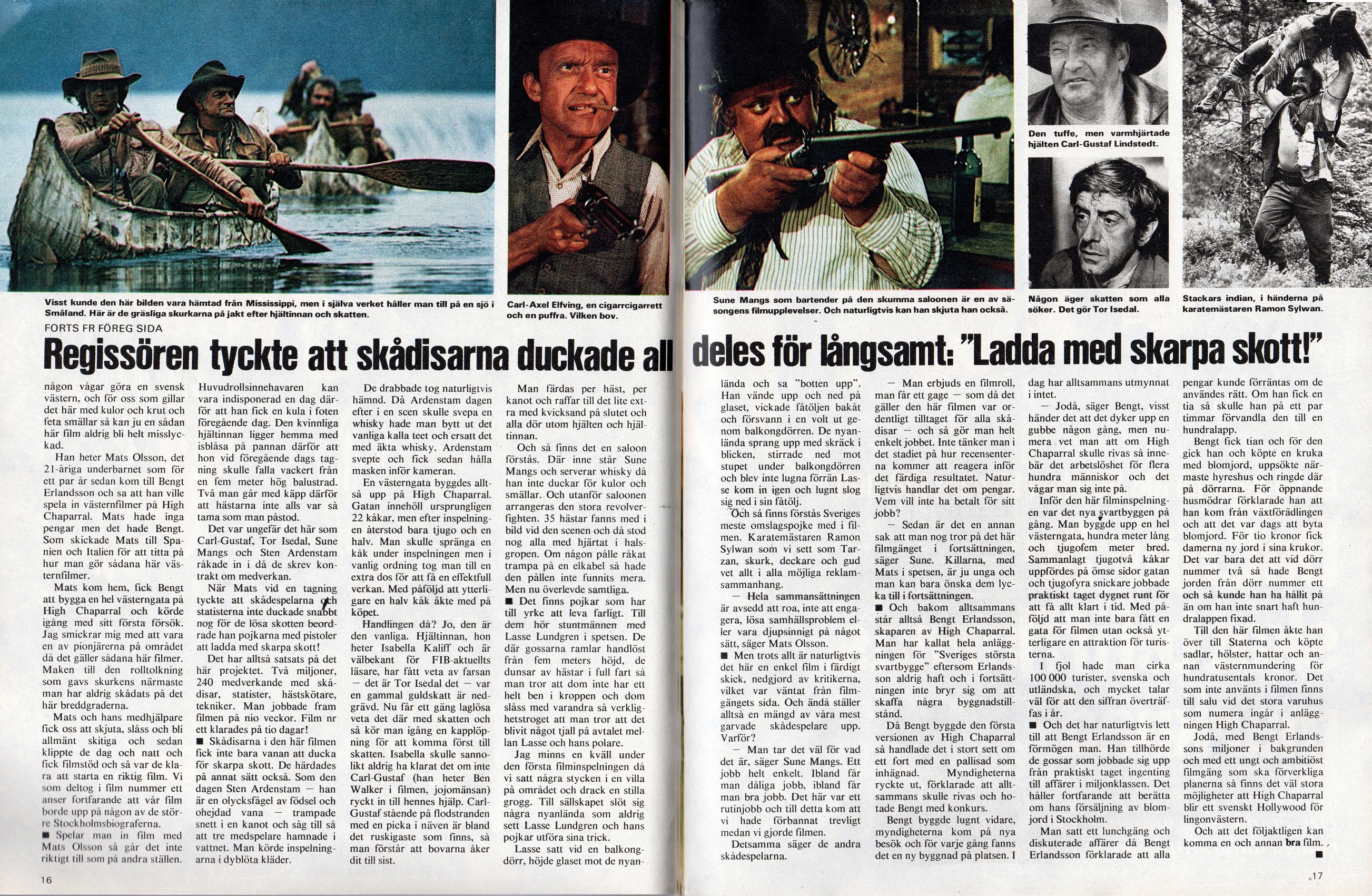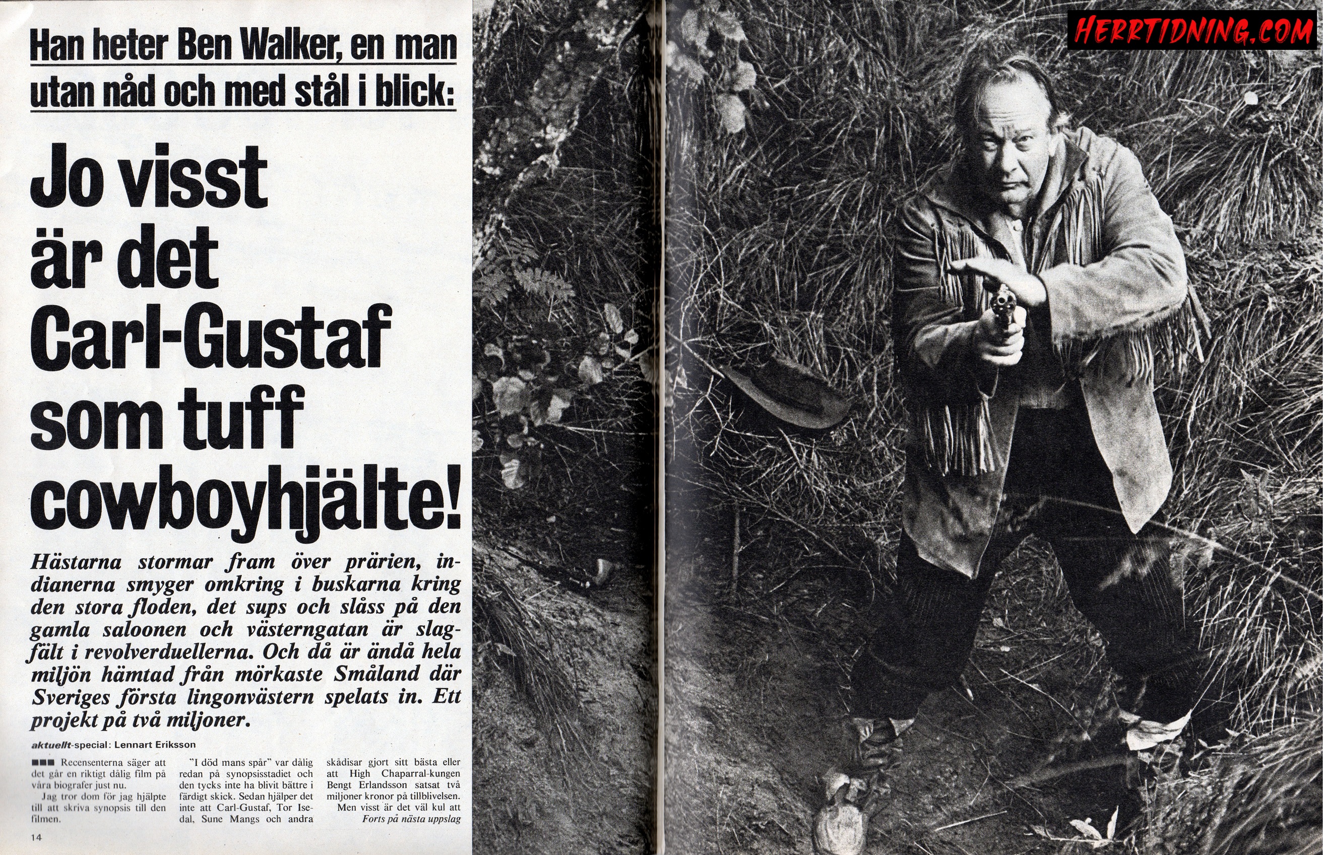 Det är nästan så man skulle döpa om bloggen till ”Mats-Helge Olsson bloggen” för nu är det ännu en gång dax för en gammal artikel om Olsson. Denna gången så kommer artikeln från den vetenskapliga tidskriften Fib aktuellt. I nummer 28 1975 så skriver man om Mats-Helges lingonvästern ”I död mans spår” som har en imponerande ensemble skådespelare. Vad sägs om Carl-Gustaf Lindstedt, Sune Mangs, Tor Isedal, Carl-Axel Elfving och karatemästaren (!) Ramon Sylvan.