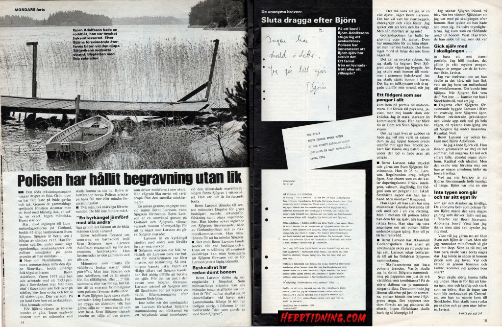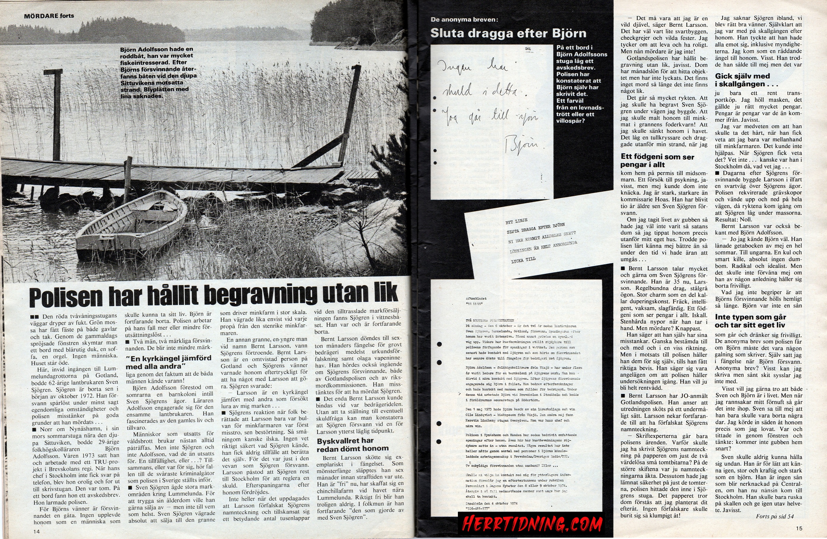 Åke Borglund intervjuar även två av Sven Sjöbergs närmaste vänner, Thomas Jakobsson och Majken Malmquist, kommissarie Lennart Hoas samt med kriminalinspektör Fabian Andersson som leder spaningsarbetet efter Björn Adolfsson. Jag kan verkligen rekommendera att läsa hela artikeln.