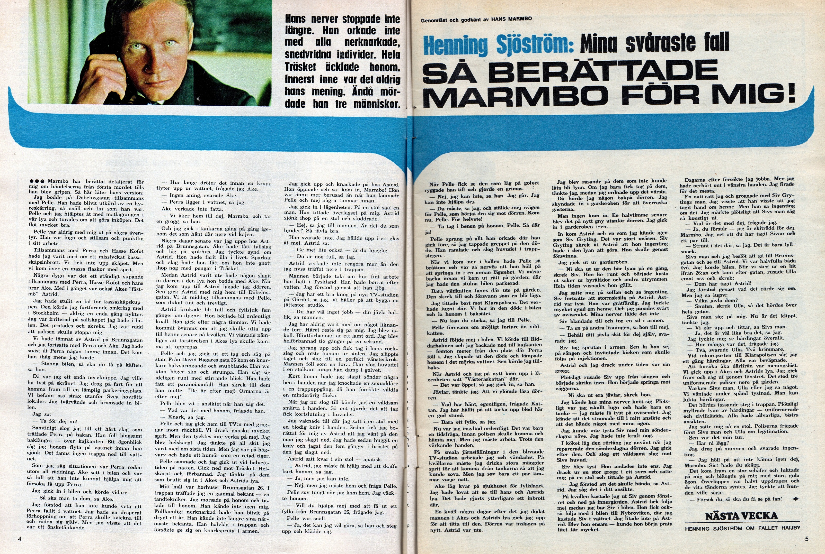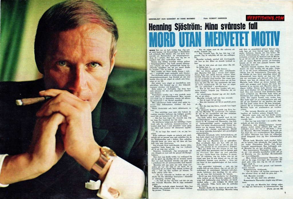 Det finns knappast något mer klassiskt svenskt kriminalfall än Hans Marmbo och träskmorden där uttrycket ”ståplats i Nybroviken” kommer från. Det finns mycket info om fallet bland annat på Flashback. Jag postar här en intressant tvådelad artikelserie från Lektyr nr 38-39 1967 där advokaten Henning Sjöström själv berättar hur han fick fallet och vad Marmbo berättade för Sjöström om dåden.