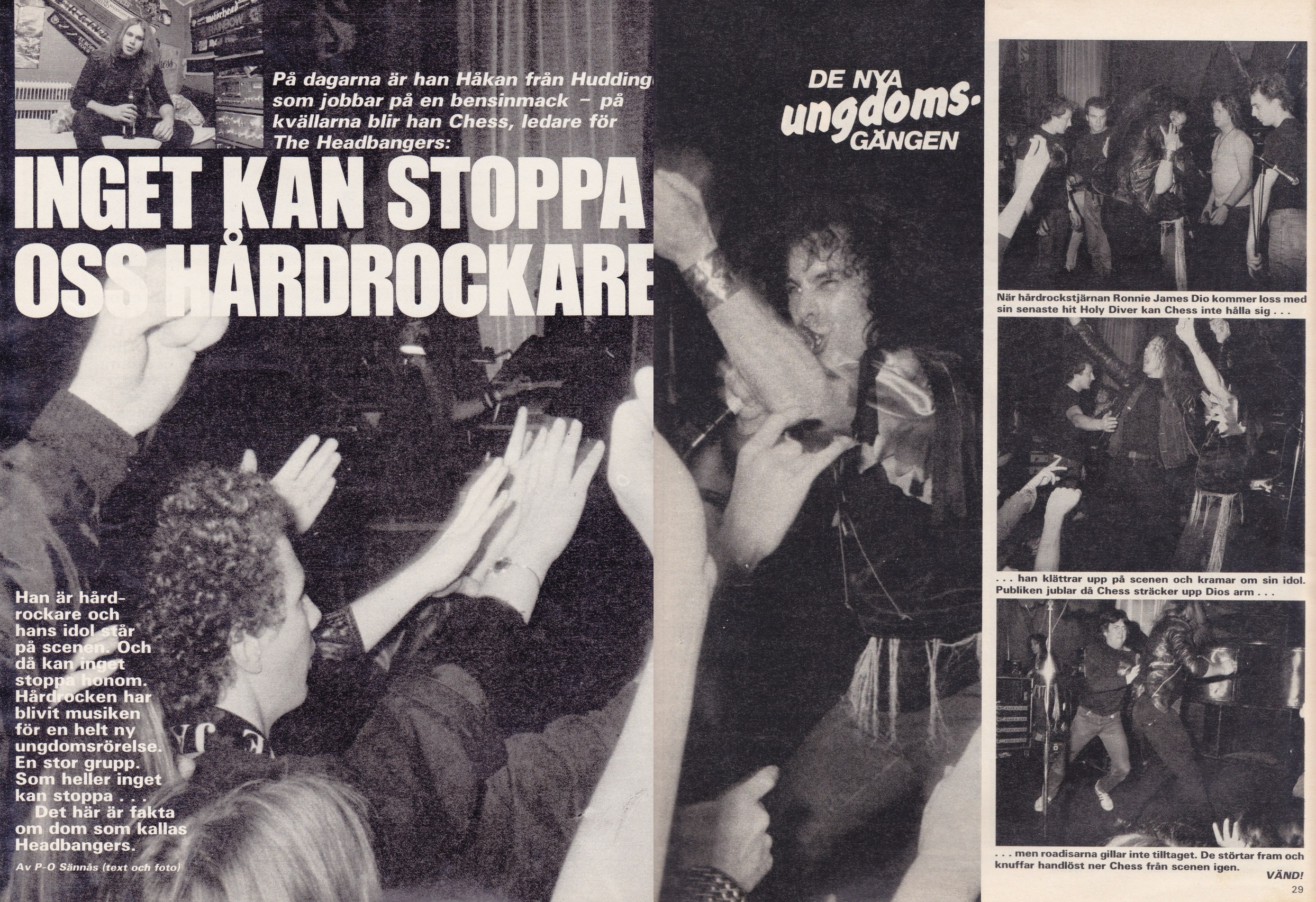 Nu har vi kommit till femte och avslutande delen i Stopp fib aktuellts artikelserie om Stockholms nya ungdomsgäng 1983. Vi har fått sett bilder och läst om mods, skinheads, punkare och rasta. I nr 51/52 så avslutar Per-Olof Sännås med en artikel om hårdrockarna och framförallt ”the headbangers” och deras ledare chess!!?