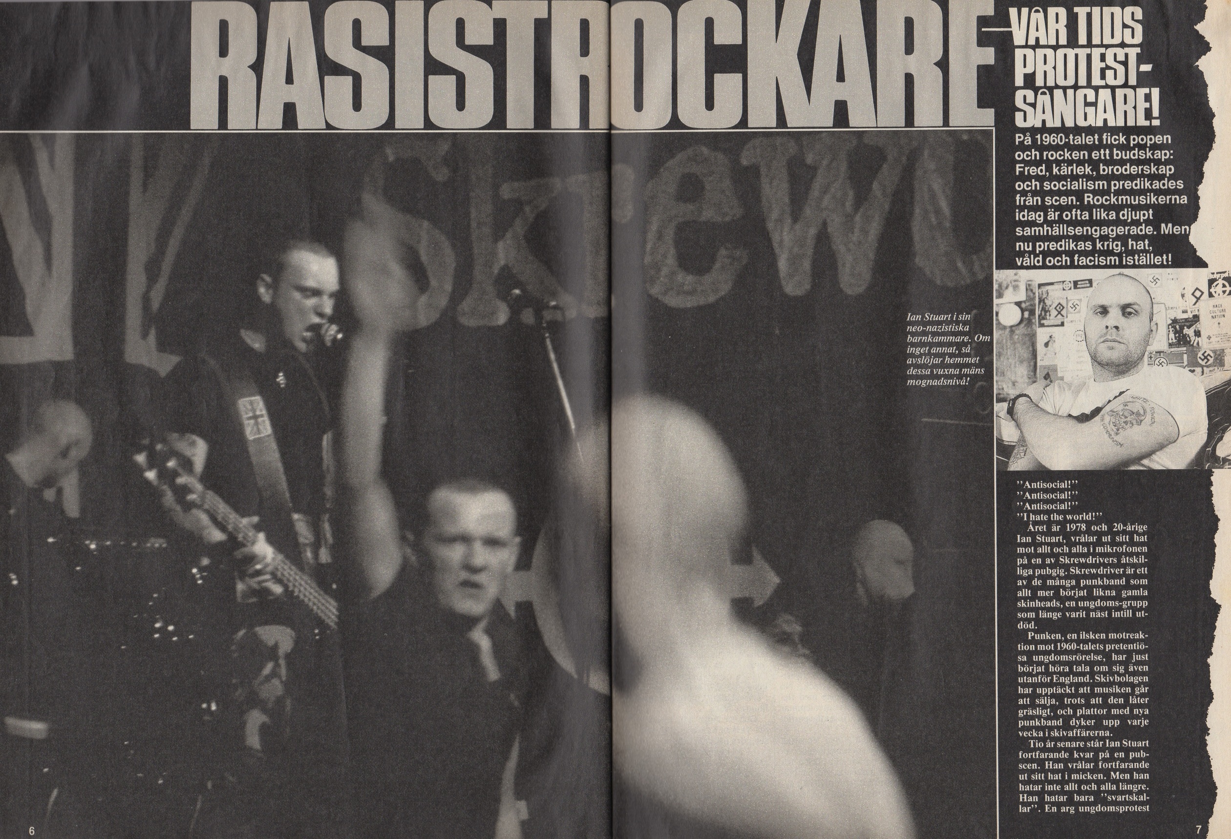 I Aktuell rapport nr 40 1988 så intervjuar journalisten Johan Holm nazisten Ian Stuart, sångare i bandet Skrewdriver.