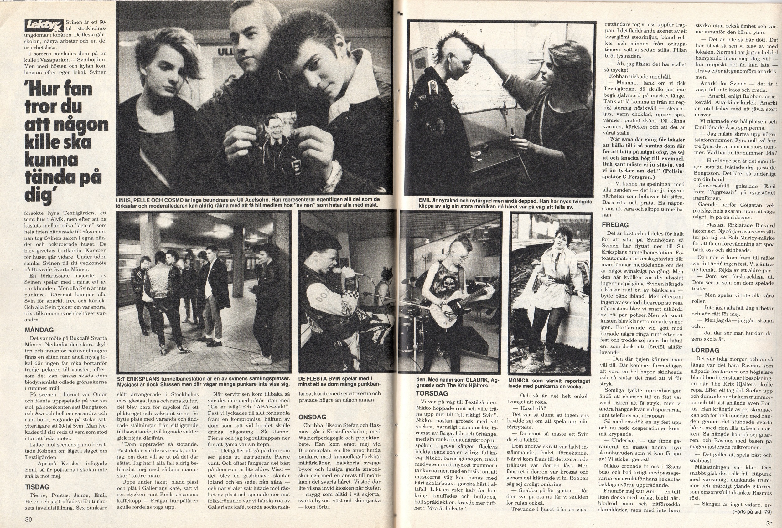 Efter punkmordet i februari 1981 (som det finns en mycket bra P3 dokumentär om) så sågs punkare av många som våldsamma individer och folk skrek mördare efter dem. Tidningen Se publicerade en artikel i nr 11 1981 där de följde ett gäng punkare. Ett intressant tidsdokument med flertalet fina bilder.
