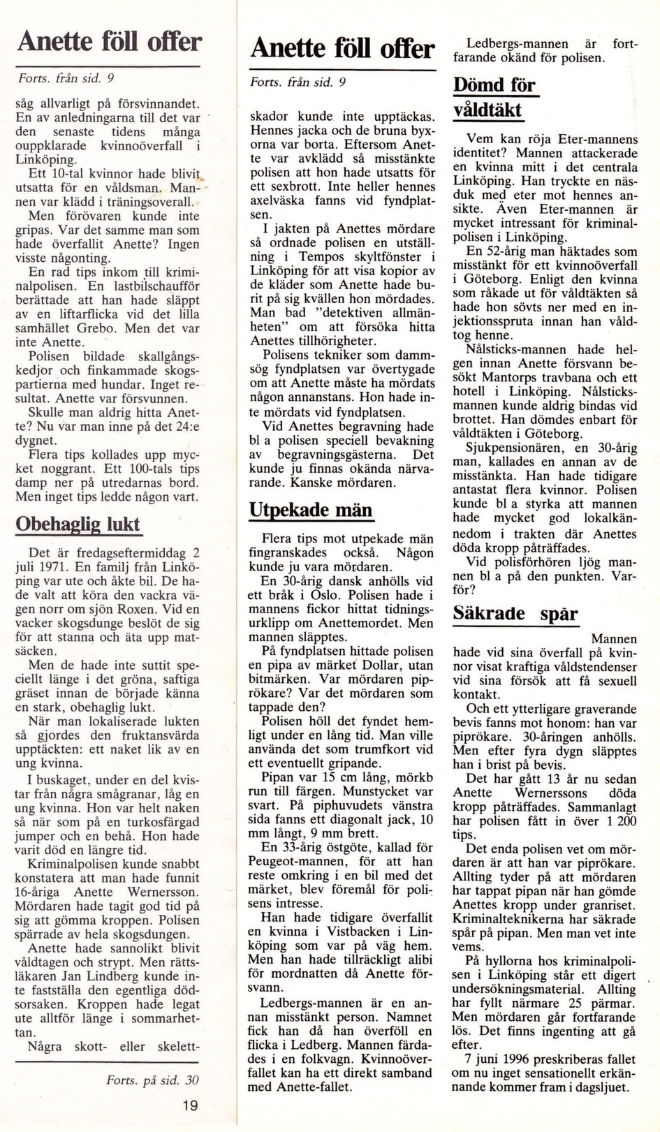 14 år senare (16 år efter mordet) så tar journalisten Tom Berg fallet i Veckans brott nr 8 1984 under serien ”En mördare går lös – Olösta svenska fall”.